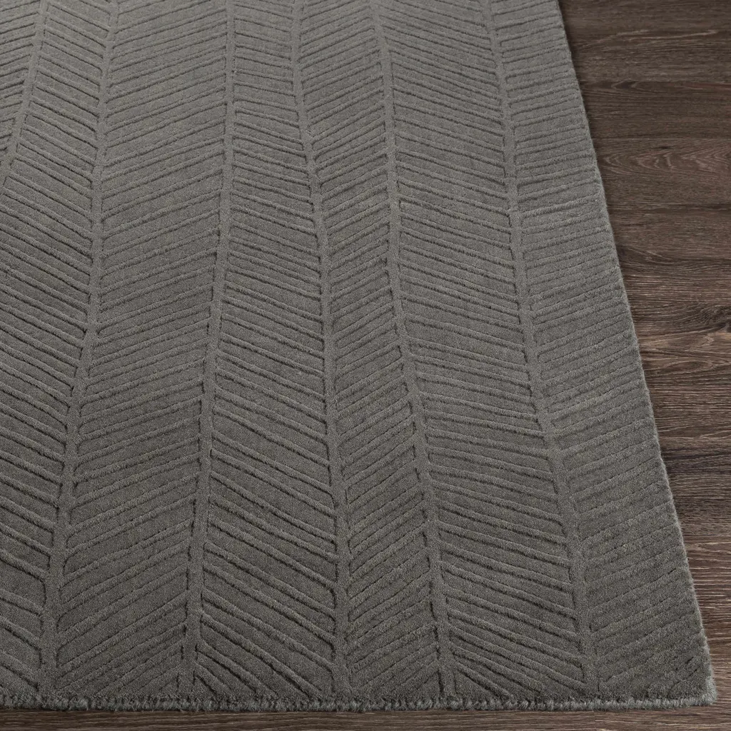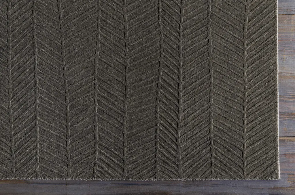 Collection: Everson Colors: Charcoal Construction: Hand Loomed Material: Face: 100% Wool Pile: Medium Pile Pile Height: 0.31" Styles: Contemporary Backing: Canvas Made In: India Thickness: 0.47" Price Range: $$$$$ (Affordable)