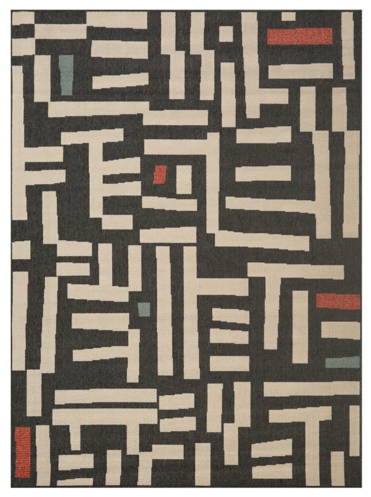 Evette Rios Modern Geometric Blocks Indoor/outdoor Rug, Black/multi 5' X 7'