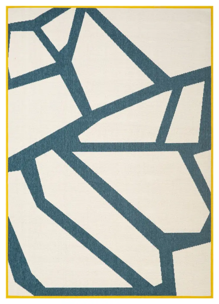 Evette Rios Modern Geometric Indoor/outdoor Rug, White/yellow/blue 2' X 3'