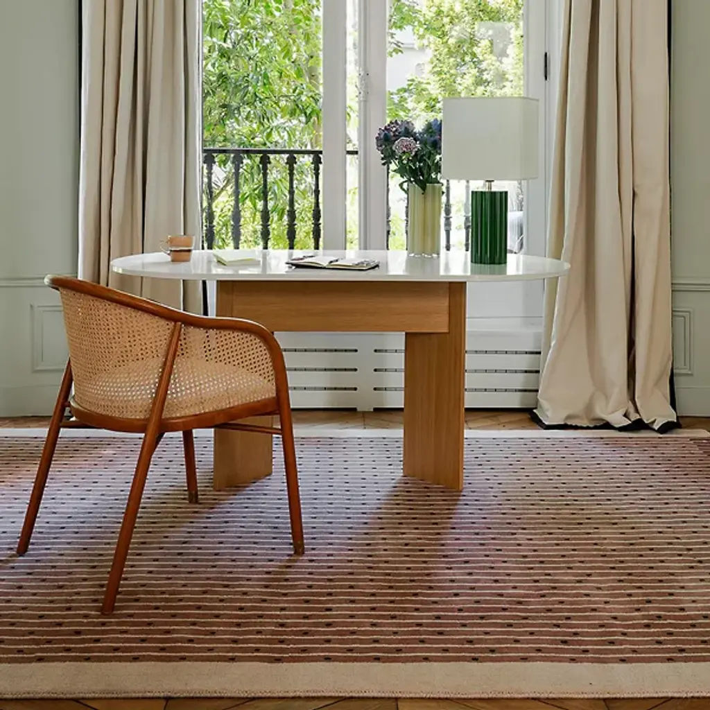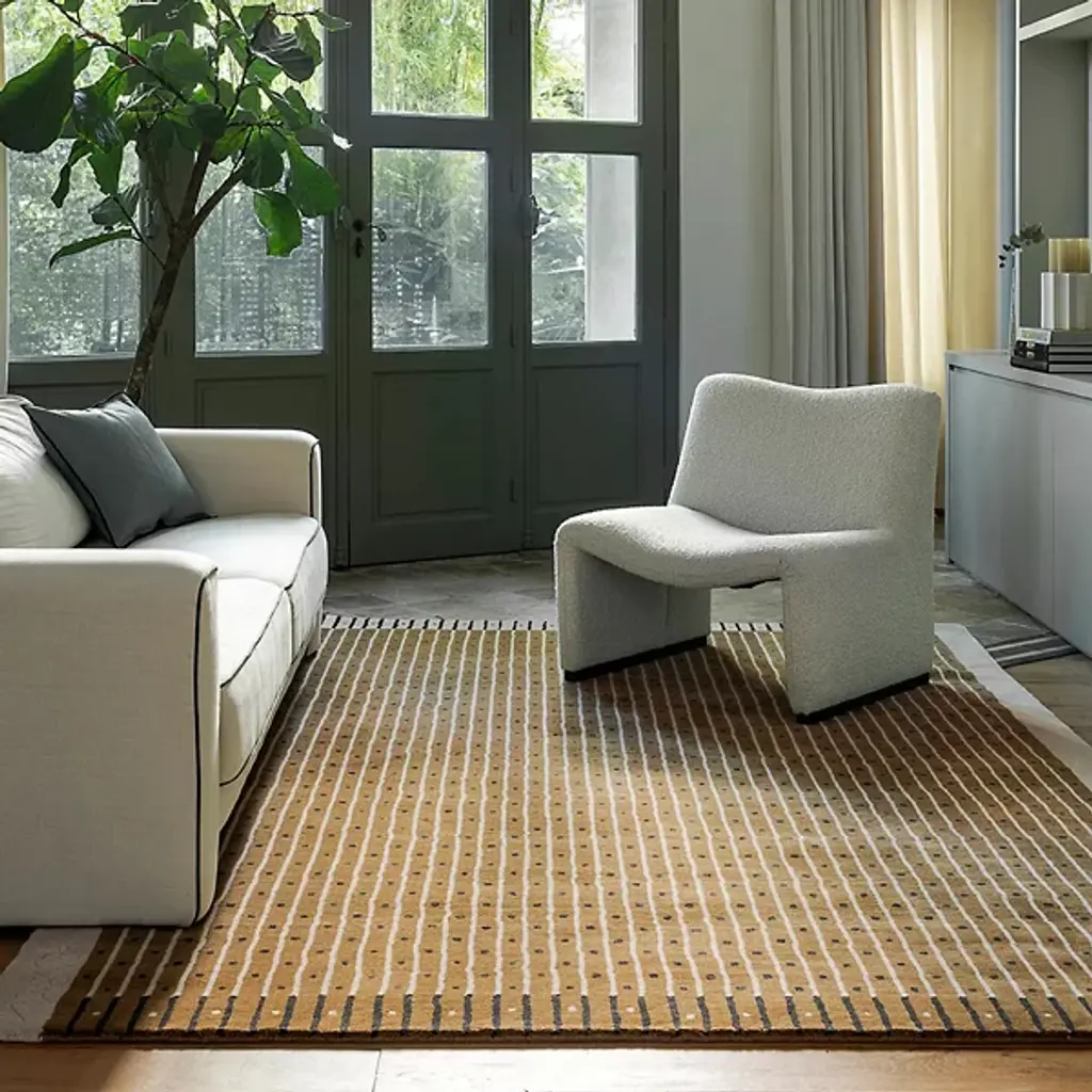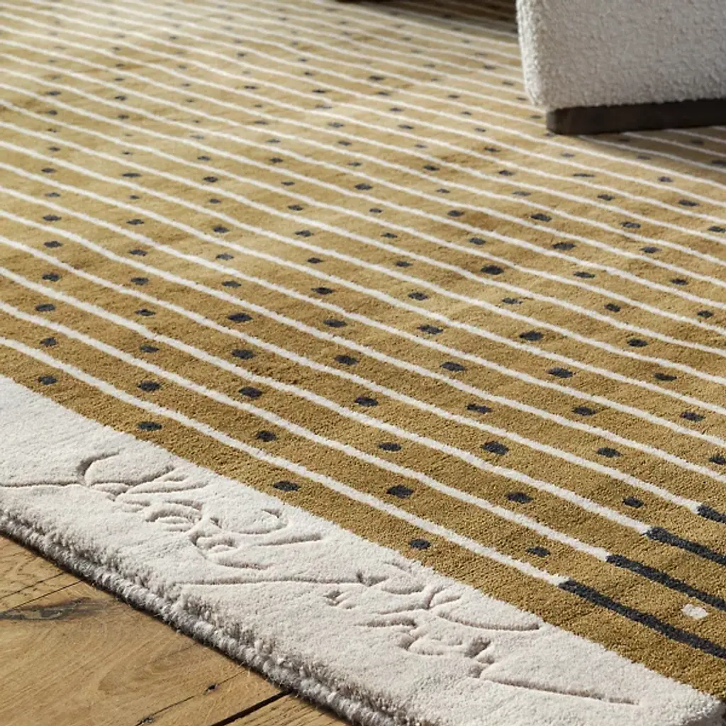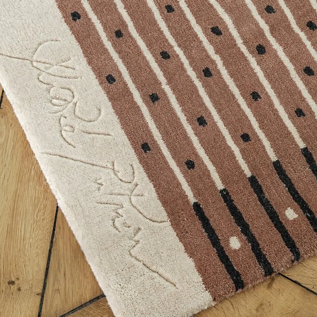 Place a definitive accent on your indoor decor with the plush and comfortable lines of the Exclamation Area Rug from Toulemonde Bochart. An Andree Putman design handwoven by Indian artisans, it’s fashioned from top-quality pure New Zealand wool, hand-tufted to reveal small details, with miniature dots set at the center of evenly-spaced pale lines. The material is luxurious, yet strong, making the rug as resilient as it is remarkable.