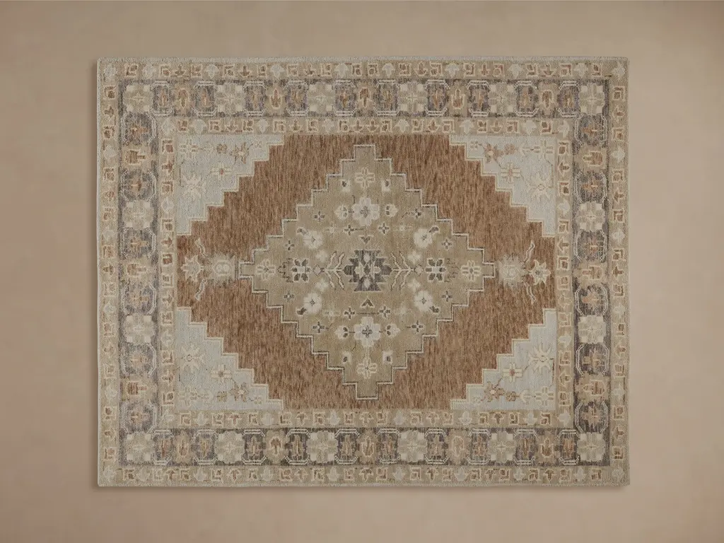 Hand-knotted in India from wool, our Ezra Rug Collection offers a versatile look with a warm, organic touch. Featuring a traditional motif and brown, natural hues, Ezra adds a stunning underfoot in any space.