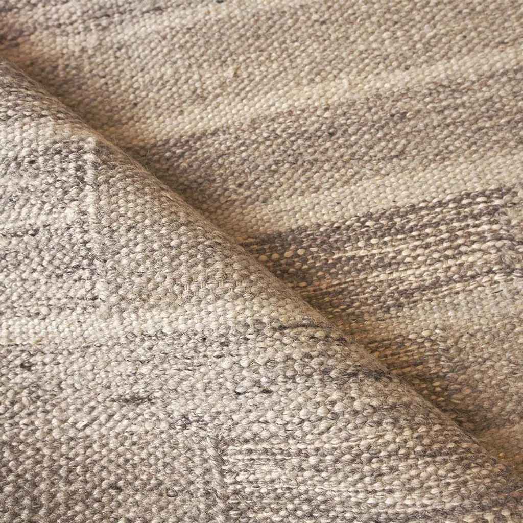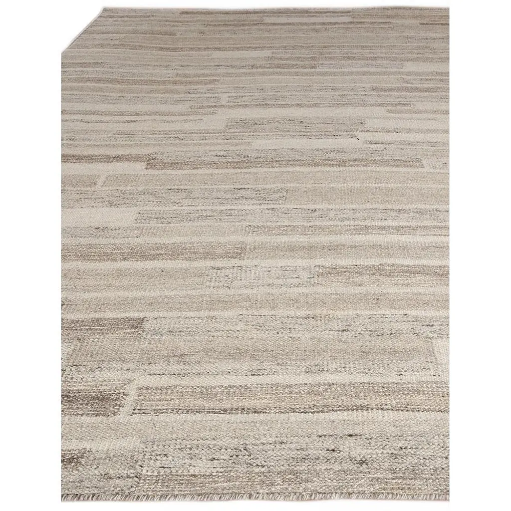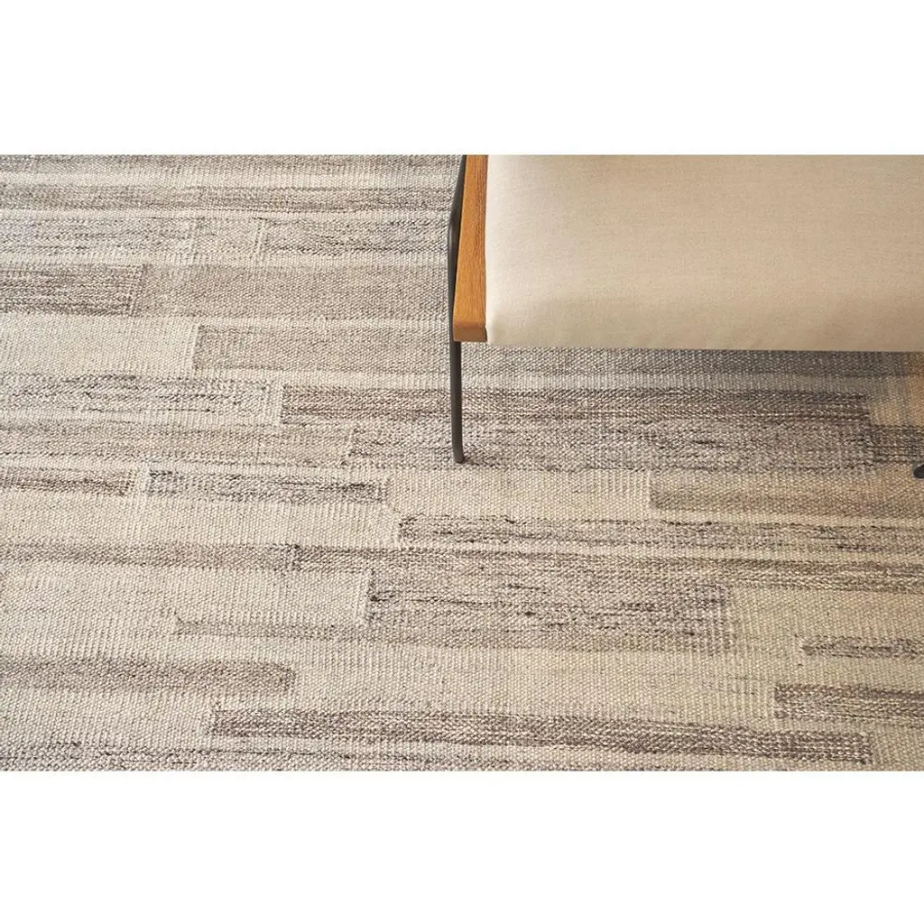 Rug swatch available! To order, choose SAMPLE in the size drop-down.With its dynamic geometric pattern, the 5'x8' Ezra rug enlivens any modern living space. Thoughtfully handmade with a blend of wool and bamboo silk fibers, this versatile rug features a neutral palette in shades of ivory, beige, and grey.