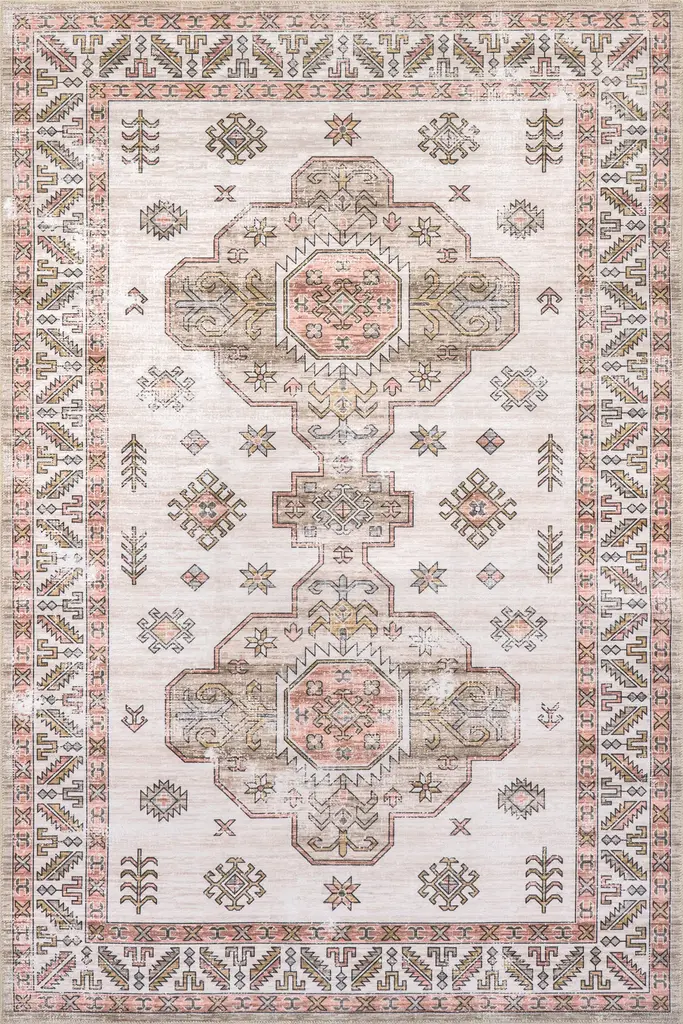 An ornamental boho rug featuring a complex pattern, making it an eye-catching centerpiece for any room. Made from powerloomed synthetics, it holds up beautifully to foot traffic. Choose from a wide array of colors and sizes. Combine a luxurious look and elevated style for your warm abode. Make the most of your time at home with our pet-friendly and easy to clean area rugs.