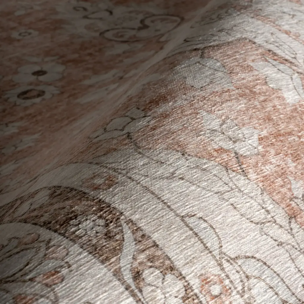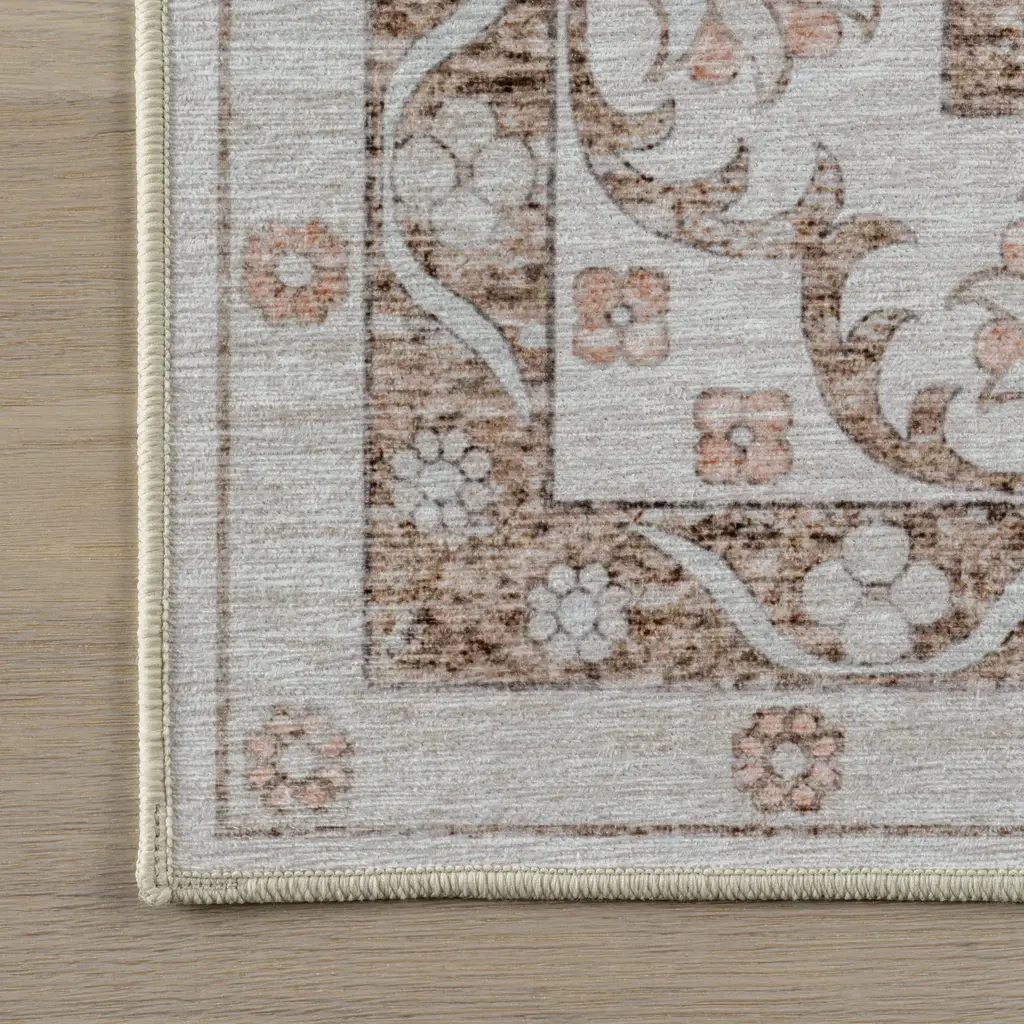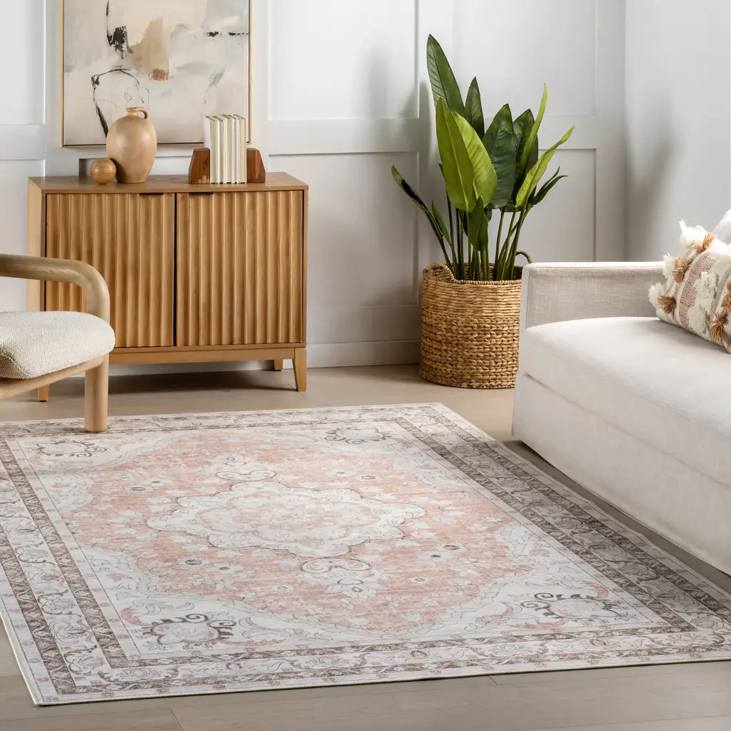 Faded Rosette Spill Proof Washable Rug | Peach - 3' X 5'