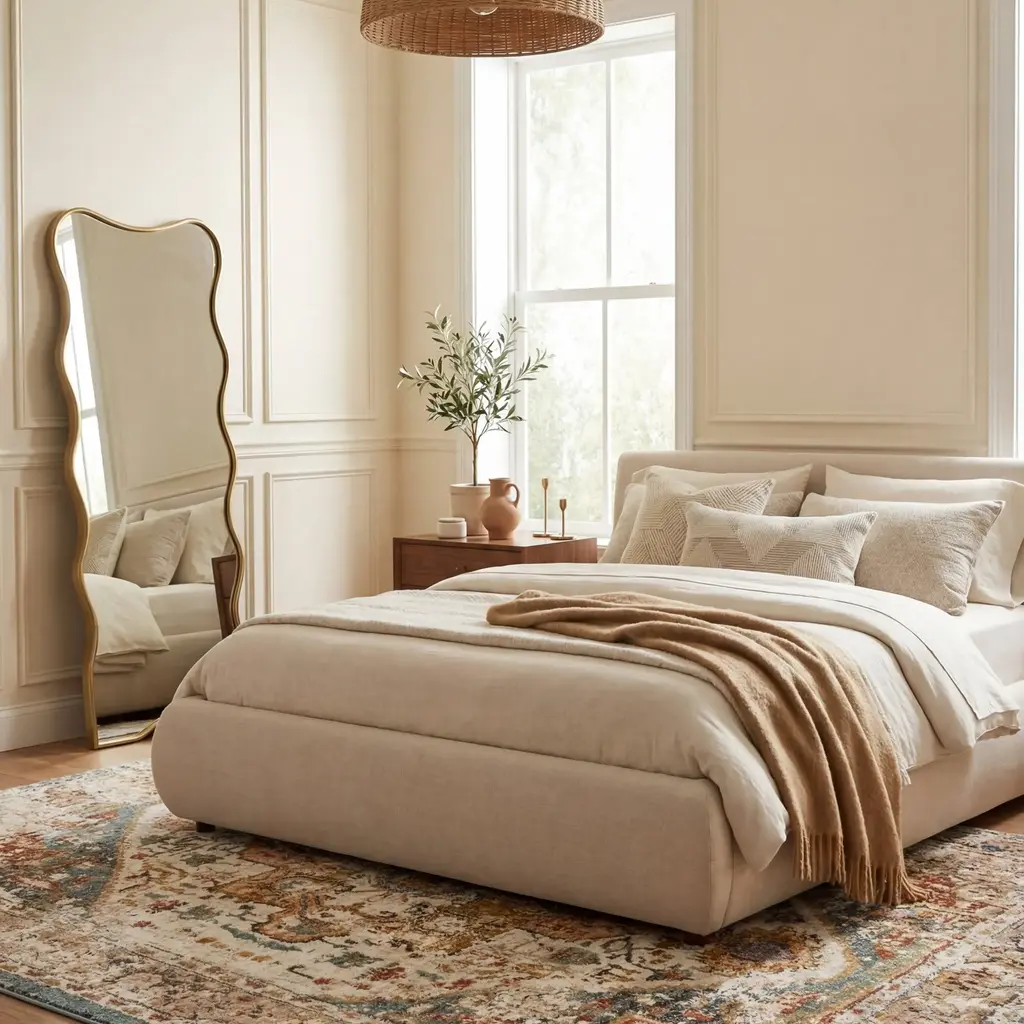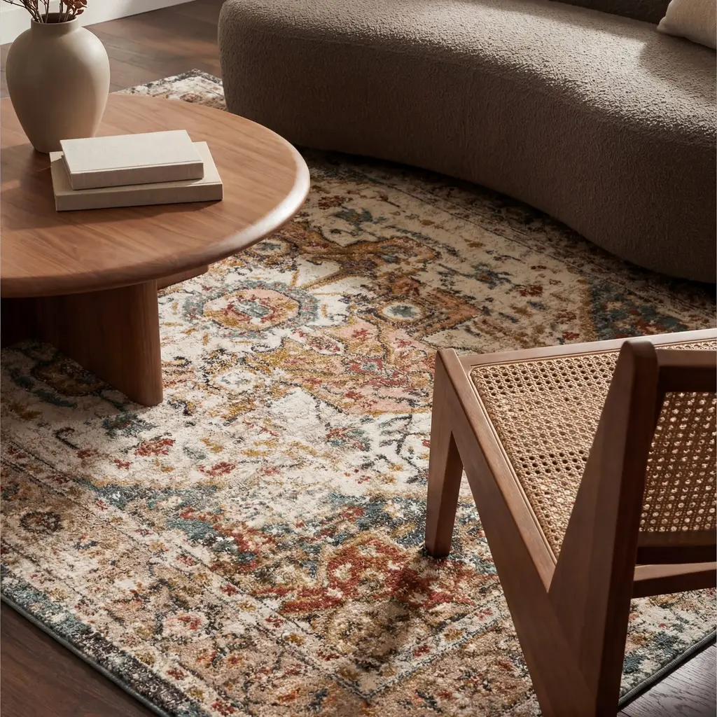 Fading Herati Medallion Rug | Beige - 6' 7" X 9'