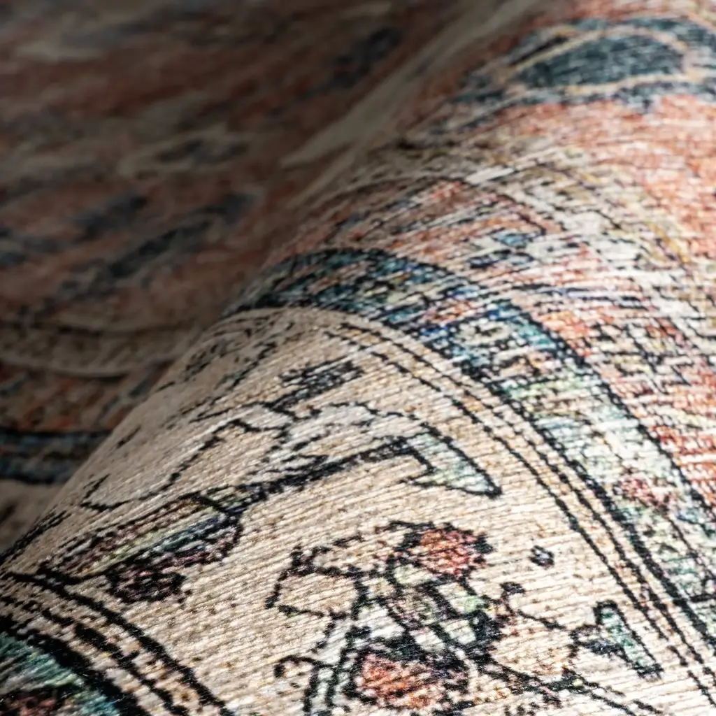 Fading Oriental Spill Proof Washable Rug | Light Rust - 9' X 12'