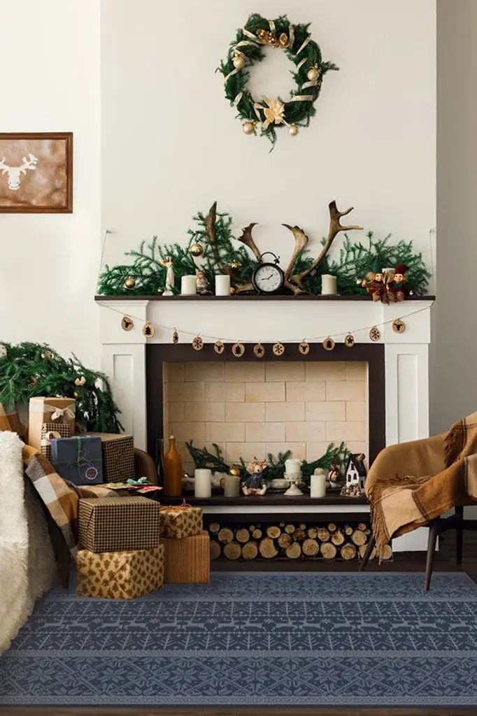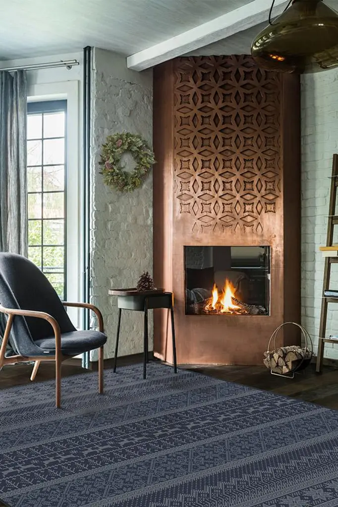 Inspired by the traditional, hand-knitted designs of its namesake, our Fair Isle Blue Rug features a multi-band of intricate and festive designs, including poinsettias, holiday trees, and reindeer, in hues of Nordic and midnight blue. Water-resistant, stain-resistant, and machine-washable.