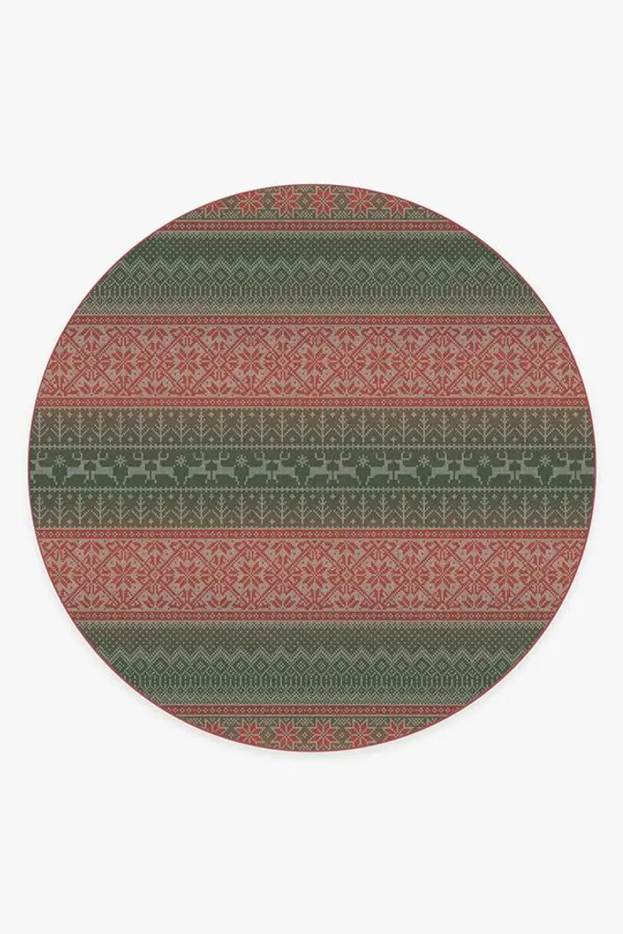 Inspired by the traditional, hand-knitted designs of its namesake, our Fair Isle Multicolor Rug features a multi-band of intricate and festive designs, including poinsettias, holiday trees, and reindeer, in hues of farmhouse red, leaf and hunter green. Water-resistant, stain-resistant, and machine-washable.