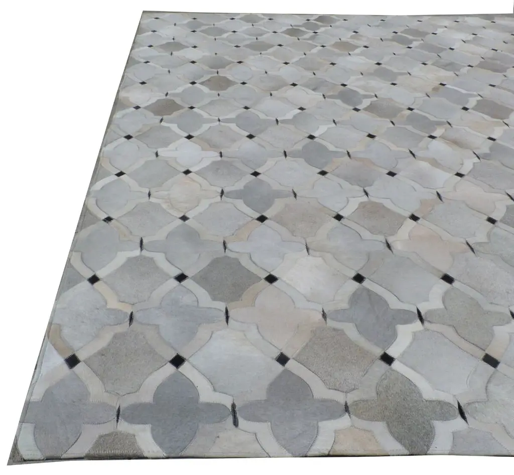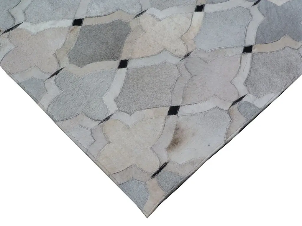 Seen first at One Kings Lane: Pieces of cowhide are thoughtfully arranged and hand-stitched to create this rug's impressive allover design. Sophisticated and luxurious, this piece is ideal for adding incredible natural texture to any decor. This rug is backed in felt, which helps prevent bunching while adding a soft layer of cushioning. We recommend a rug pad to keep your rug securely in place.