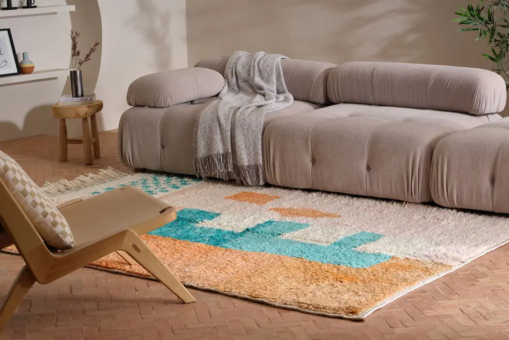 One-of-a-kind new rug, hand-knotted near the small city of Boujad in the Chaouia-Ouardigha region of Morocco