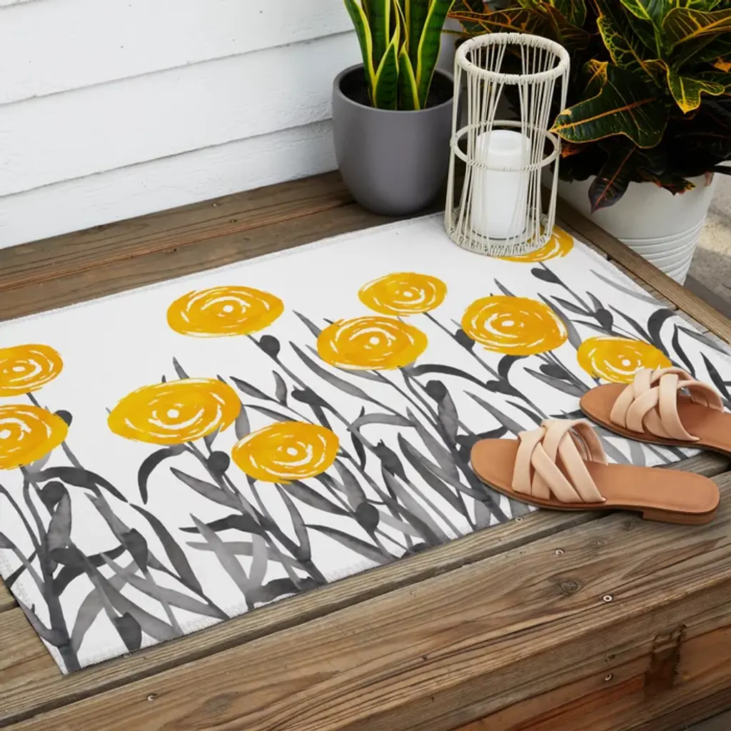 Fall Sunshine, Floral Watercolor Print, Yellow And Gray Outdoor Rug
