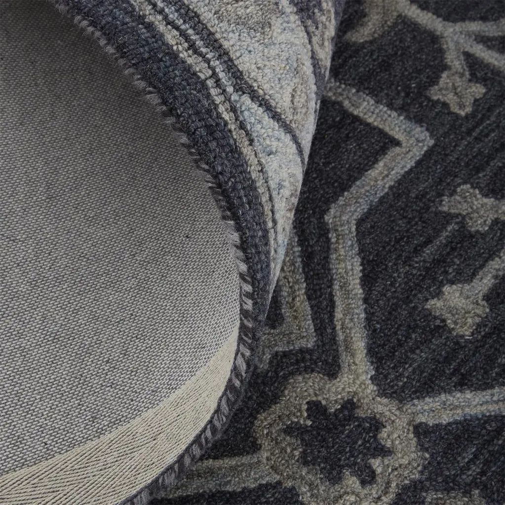 Collection: Fallon Colors: Blue, Gray Construction: Hand Tufted Material: Face: 100%Wool / Warp: Cotton Pile: Low Pile Pile Height: 0.38" Styles: Traditional Backing: Cotton Made In: India Thickness: 0.38" Price Range: $$$$$ (Affordable)
