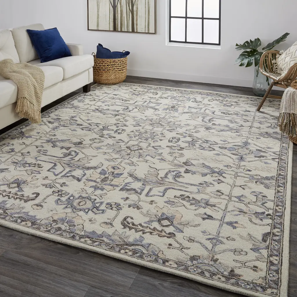 Collection: Fallon Colors: Ivory, Gray Construction: Hand Tufted Material: Face: 100%Wool / Warp: Cotton Pile: Low Pile Pile Height: 0.38" Styles: Traditional,Casual Backing: Cotton Made In: India Thickness: 0.38" Price Range: $$$$$ (Affordable)