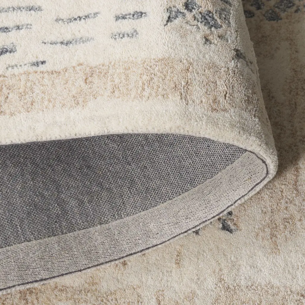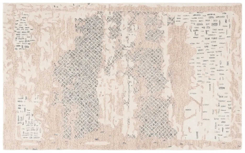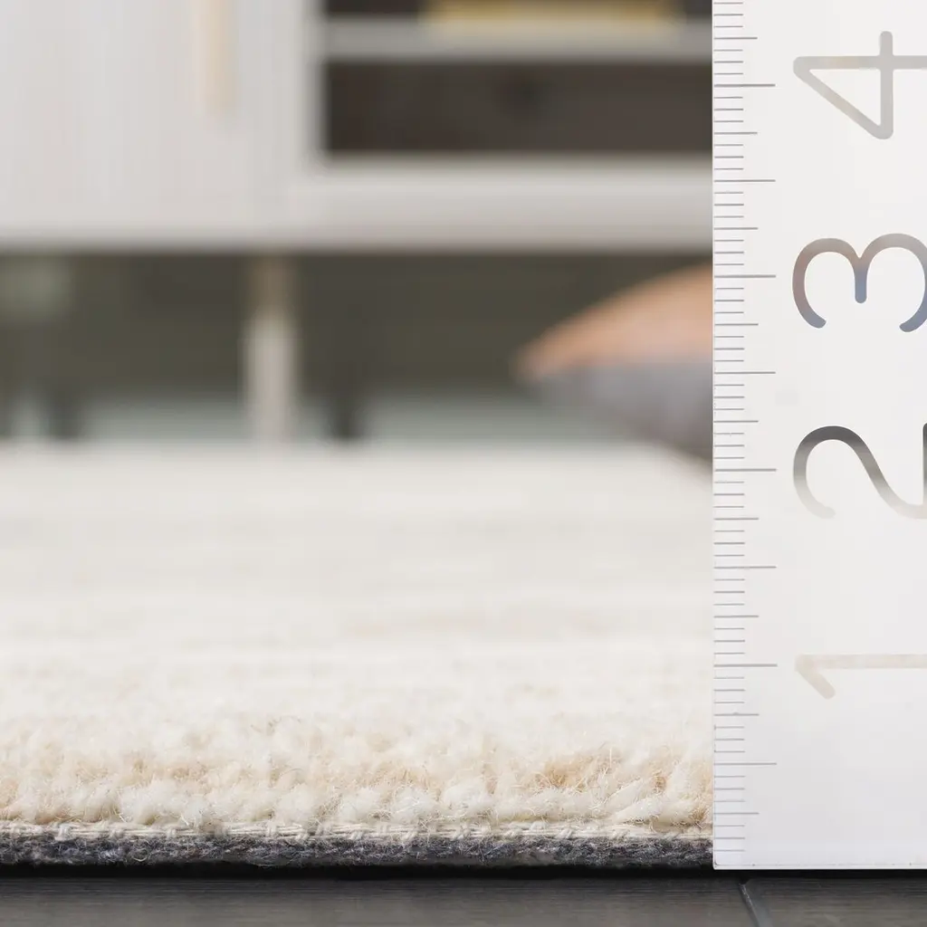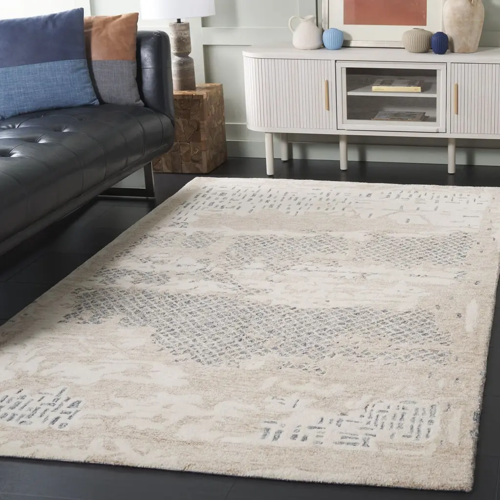 Elevate your living space with our exquisite hand tufted wool rug crafted in India. This 3' X 5' small rectangle area rug boasts a plush 1/2" height, offering a soft underfoot experience that instantly adds comfort to any room. The timeless blend of beige and grey hues creates a versatile color palette, making it the perfect addition to your home decor. The sophisticated design exhibits a unique pattern that draws inspiration from abstract and traditional motifs, providing a modern twist on classic aesthetics. Made with meticulous attention to detail, the luxurious wool construction not only ensures durability but also gives the rug a premium texture that speaks to its quality craftsmanship. Whether in a cozy corner reading nook or as a focal point in your living room, this hand tufted masterpiece will fill your home with elegance and warmth. Bring home this small rectangle wool rug and let it be the foundation of style and comfort in your personal sanctuary.