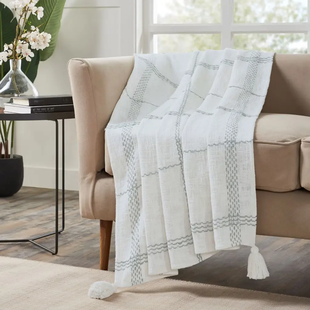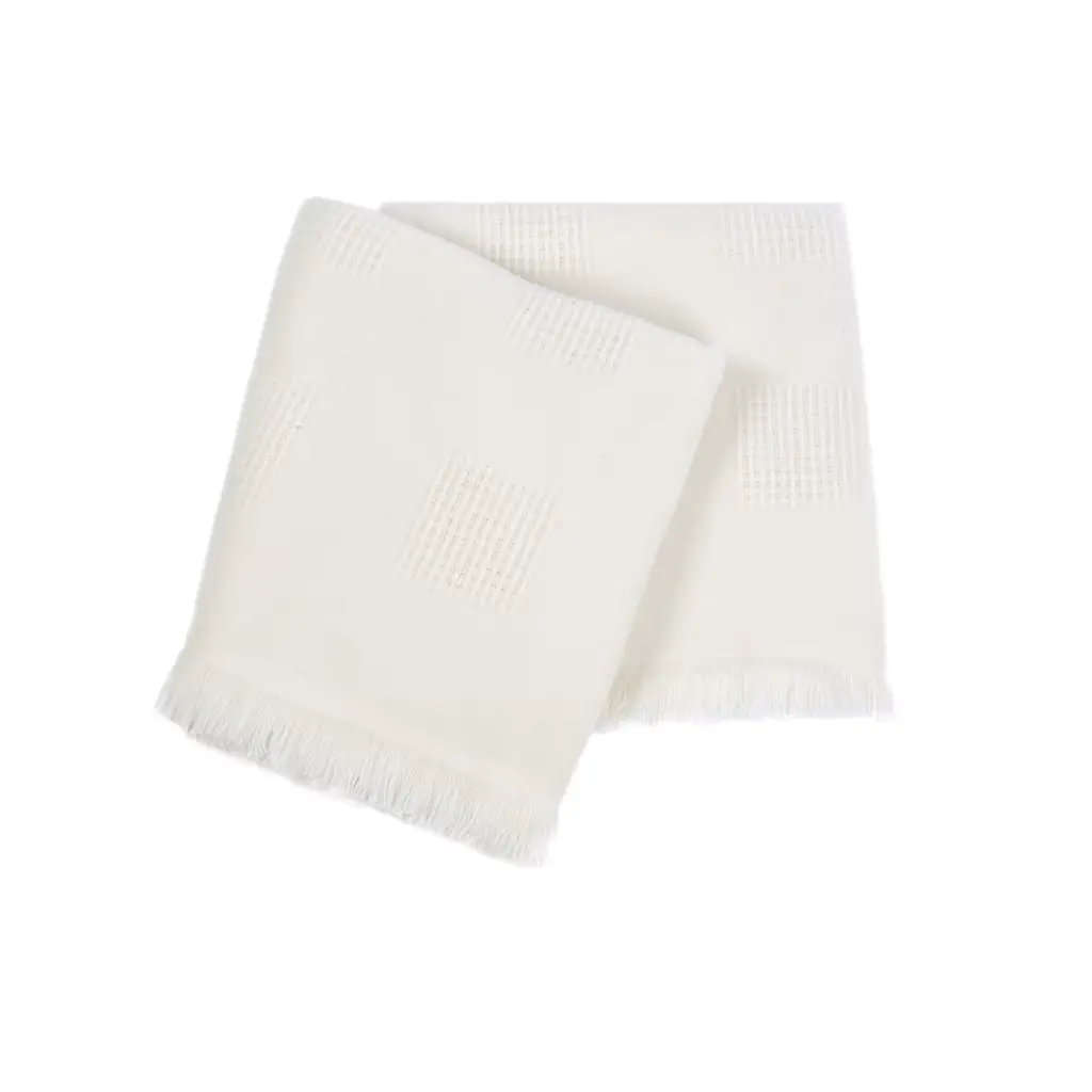Farnese Cream 100% Cashmere Single Plaid With Short Fringes