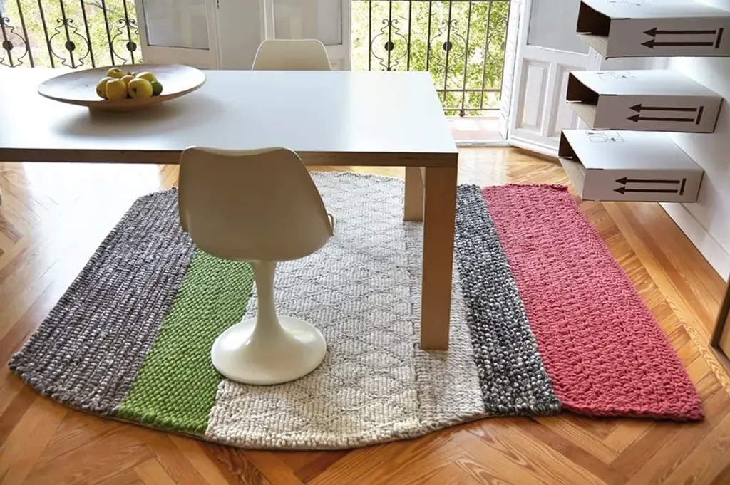 Fibre composition: 100% new wool.Backsizing: Cotton.Total weight approx: 5'5 kg/m² - 1'1 lbs/ft²Total height approx: 40 mm.Manufacturing technique: HAND LOOM.