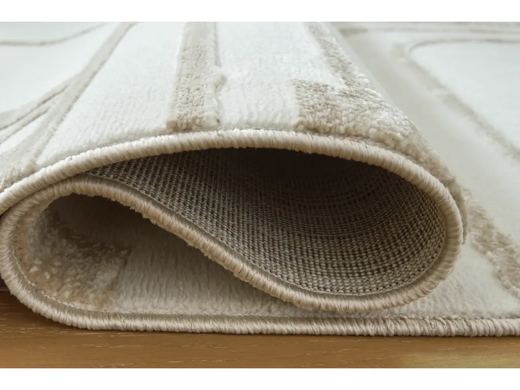 Become enamored with the Farongrove area rug’s subtle and sophisticated take on contemporary decor. Shades of ivory and beige create depth and dimension, forming a geometric pattern with fresh, on-trend appeal. The high-low construction and plush pile lend a soft, cozy feel underfoot.