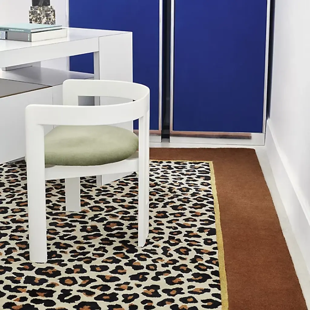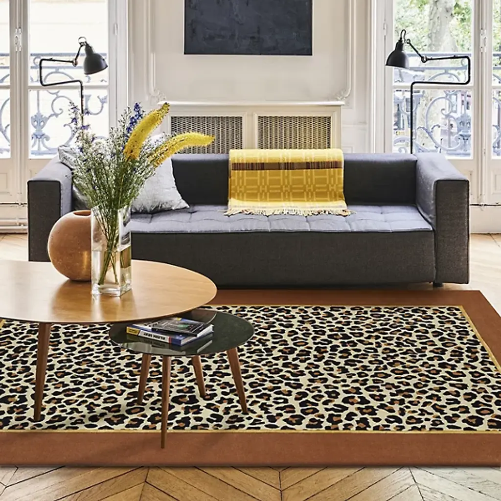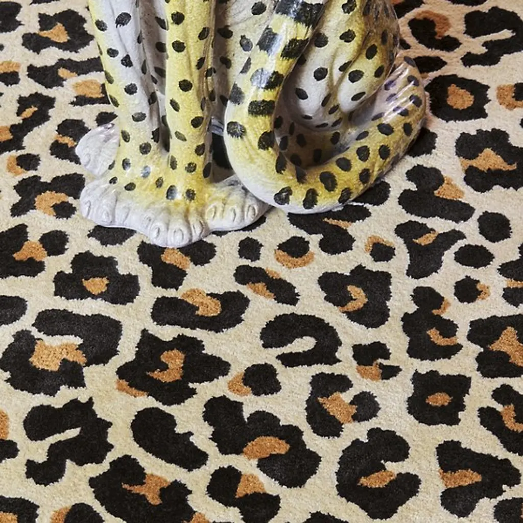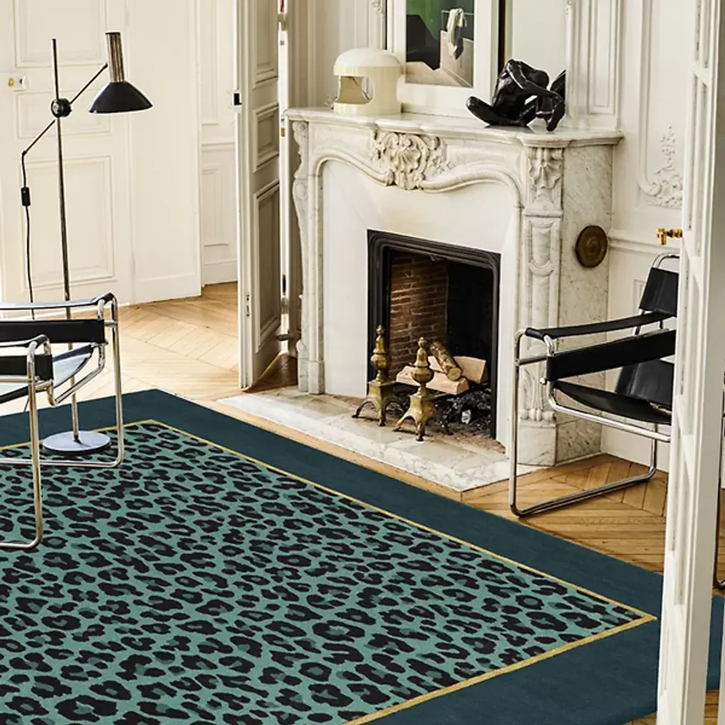 The Fauve Area Rug from Toulemonde Bochart offers a daring and vibrant addition to inside spaces seeking a touch of refined savagery. A dramatic leopardskin pattern done in a mix of hand-tufted wool and viscose fibers adds a daring drama to its surroundings, framed by a slim golden border and assembled through a modern interpretation of renowned antique dealer Madelaine Castaing to produce patterns that echo the natural world without needing an actual leopard. Each rug is made by hand with worsted New Zealand wool in a tight weave for strength and soft tactile feeling, excellent for adding a welcome touch of classical style and boldness to heavy-use spaces.