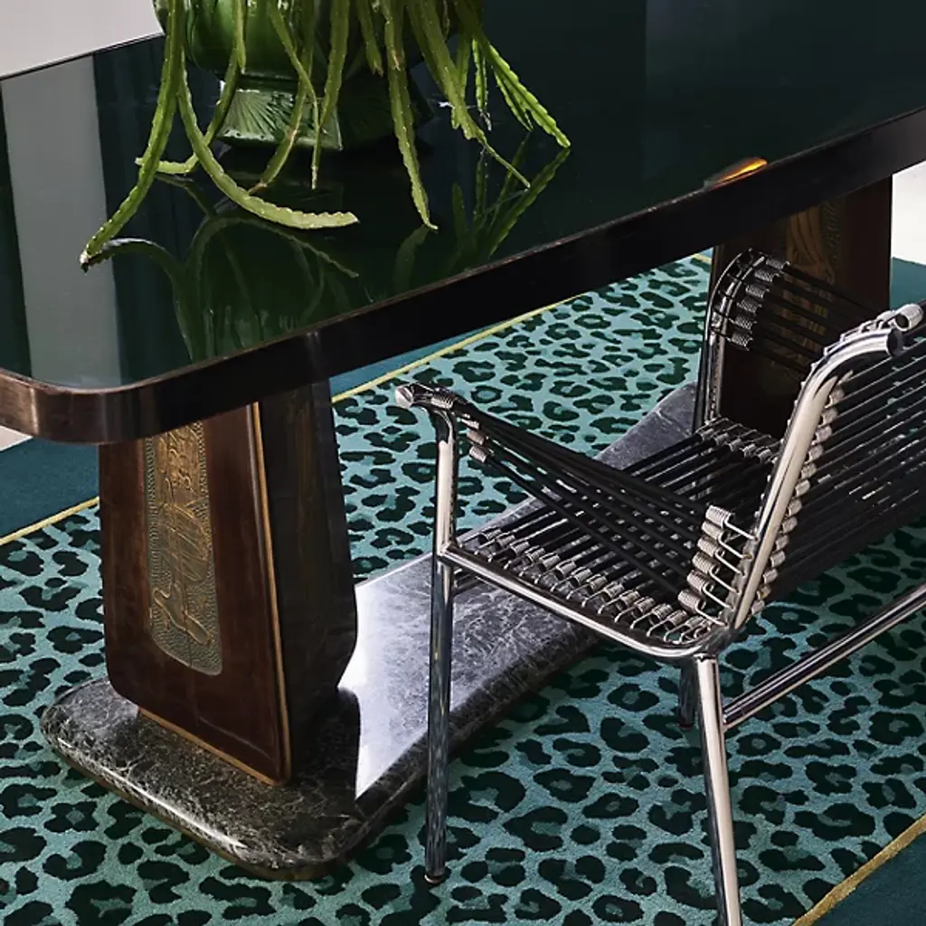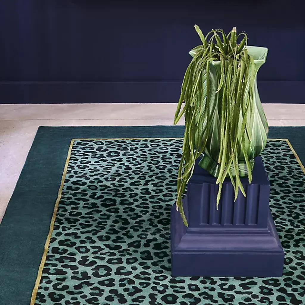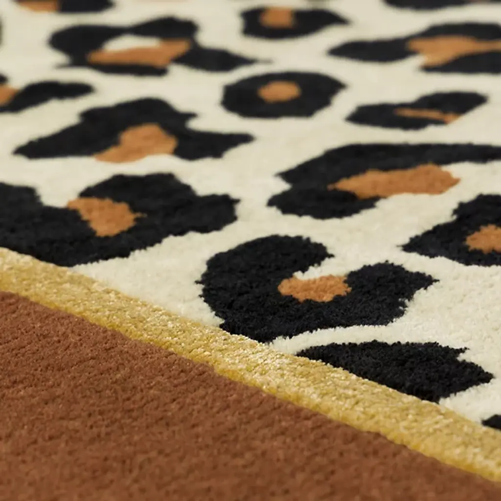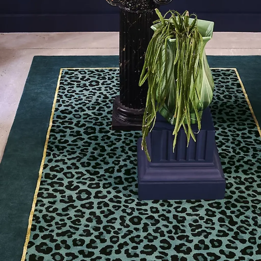 The Fauve Area Rug from Toulemonde Bochart offers a daring and vibrant addition to inside spaces seeking a touch of refined savagery. A dramatic leopardskin pattern done in a mix of hand-tufted wool and viscose fibers adds a daring drama to its surroundings, framed by a slim golden border and assembled through a modern interpretation of renowned antique dealer Madelaine Castaing to produce patterns that echo the natural world without needing an actual leopard. Each rug is made by hand with worsted New Zealand wool in a tight weave for strength and soft tactile feeling, excellent for adding a welcome touch of classical style and boldness to heavy-use spaces.
