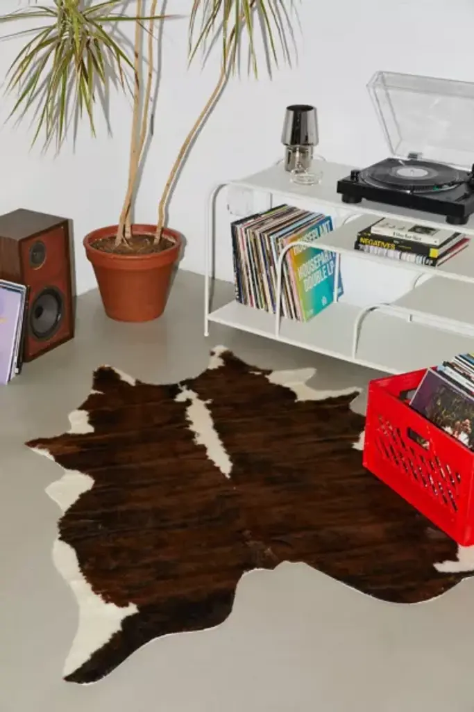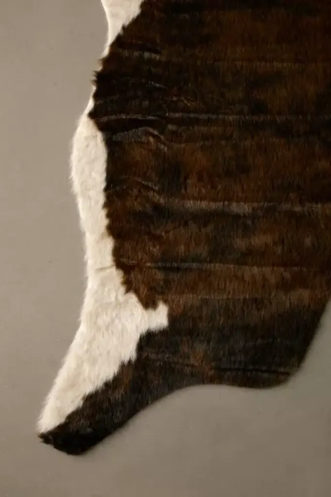 Add a Western layer to your flooring with this faux hide-shaped rug made from short strands of polyester that create a fur-like fabrication. This area rug features an animal hide shape that lends a modern-meets-Western finish. **Features** \- Faux Animal Hide Rug \- Animal hide silhouette \- Low-profile area rug is perfect for your living space **Content + Care** \- 100% Polyester \- Spot clean \- Imported **Size** \- Dimensions: 60"l x 46"w