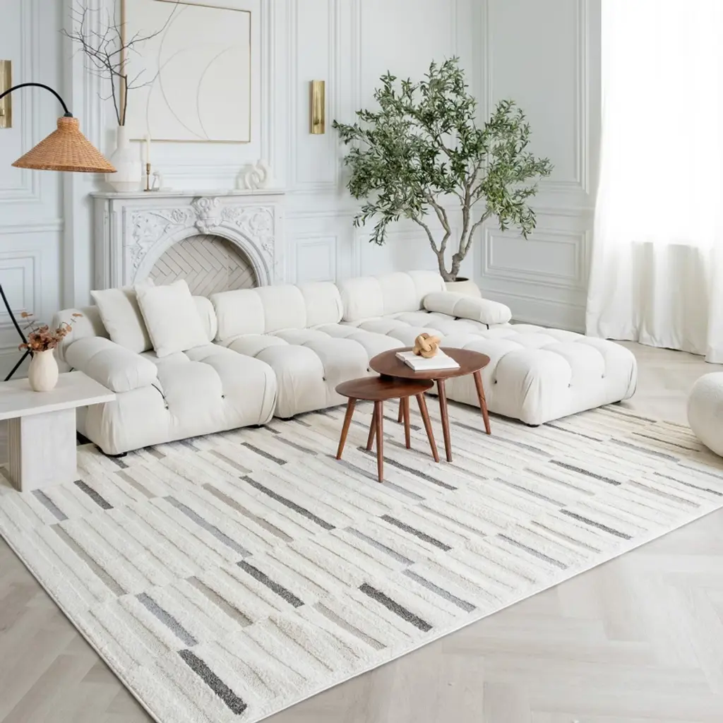 Introducing our Faux Wool Modern Stripe Pattern Printed Area Rug, the perfect blend of style, comfort, and practicality for your home. This ultra-thin, low pile rug features a contemporary stripe design that complements any modern decor, adding a touch of vintage charm with its unique pattern. Crafted with pet-friendly materials, it is non-shedding and stain resistant, making it ideal for households with pets and children.Our area rug is machine washable, ensuring easy maintenance and long-lasting freshness. The non-slip backing provides excellent grip on various floor surfaces, enhancing safety and preventing unwanted movement. Its foldable design allows for convenient storage and transport, while the bordered edges add durability and a polished finish.Vacuum cleaning is effortless thanks to the low pile construction, which also contributes to the rug's soft and comfortable feel underfoot. Whether placed in your living room, bedroom, or hallway, this rug combines functionality with aesthetic appeal to create a welcoming atmosphere.Key Features:- Modern stripe pattern with vintage-inspired design- Ultra-thin, low pile for easy cleaning and comfort- Machine washable for hassle-free care- Stain resistant and pet-friendly materials- Non-shedding and soft texture- Non-slip backing for safety and stability- Foldable for easy storage and transport- Durable bordered edges for long-lasting useUpgrade your living space with this versatile and stylish area rug that meets all your practical needs while enhancing your home’s decor.