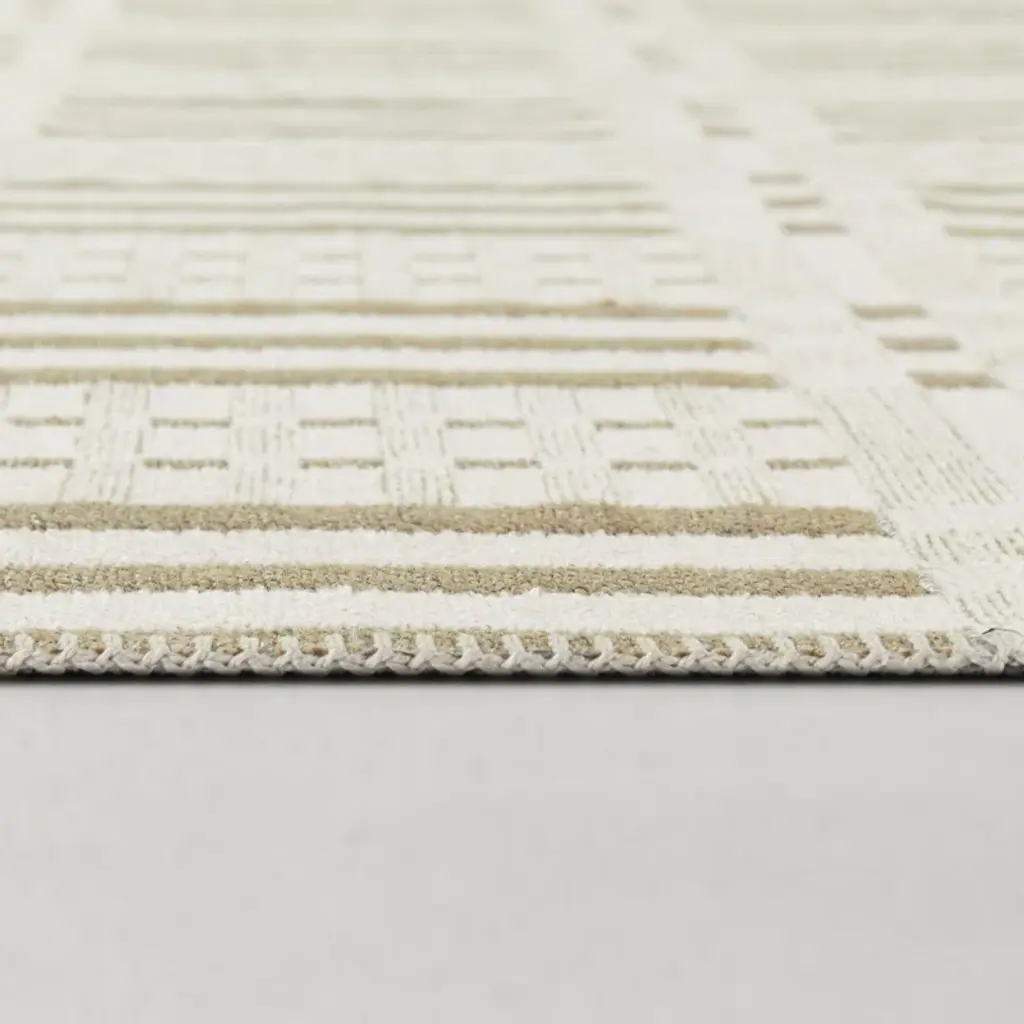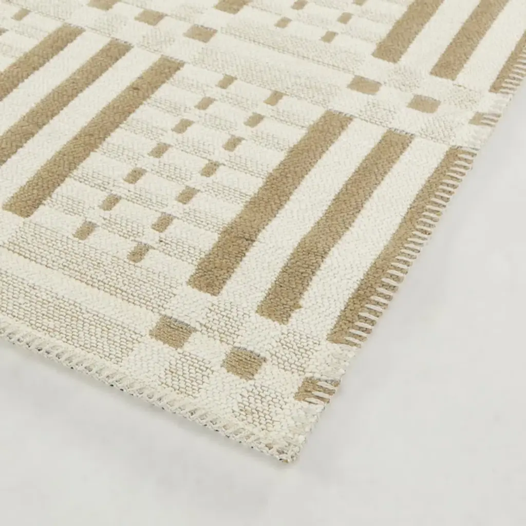 The inspiration for this collection was found in the rich Indian culture of rugs and is the result of a smart combination of very natural-looking jute yarn and polyester. Ethnical inspired and geometric linear looks, intricate chevrons, and abstract designs will enrich every home and create a cozy living space. Foldable and bespoke finishing with the shepherd's stitch to give each rug an extra touch of a graceful look.