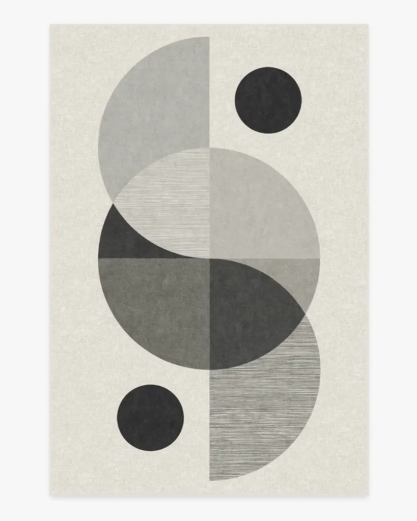 Circle back. Inspired by mid-century abstract art, this area rug showcases a geometric design that emphasizes its negative space + gray, white, and gold palette. It’s hand-tufted from wool in a medium pile height that delivers the right combination of cushioning and resilience.