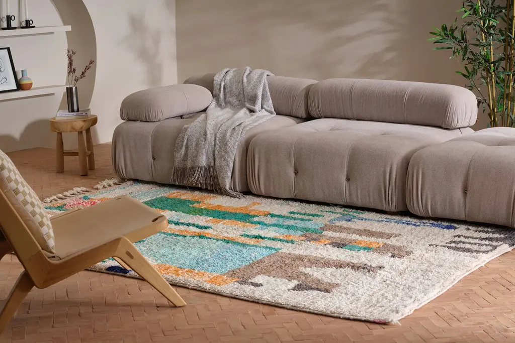 Our Moroccan pieces are each one-of-a-kind. Much of our collection was woven between 30 and 100 years ago, and curated by us. Other rugs in our collection are fresh off the loom and made with traditional techniques. Moroccan rugs don’t come with a key. As with any painting or poem, their motifs have many subjective interpretations. Originally made for personal use, these rugs took months to weave, documenting a shifting tide of events and emotions in the weaver’s life.