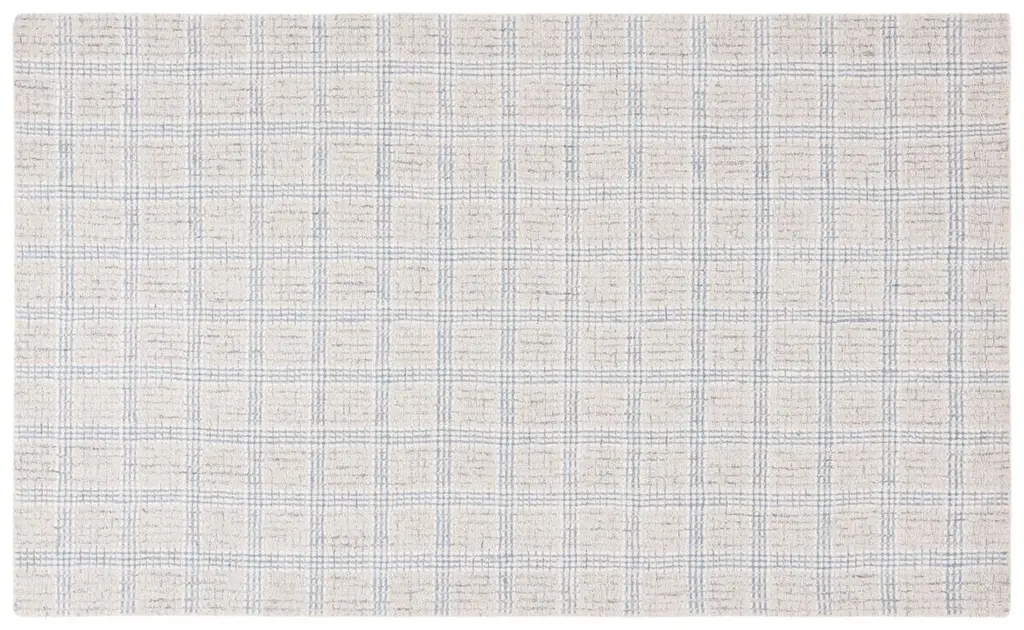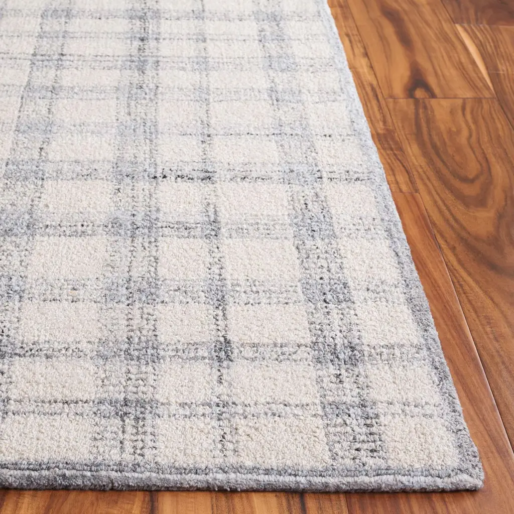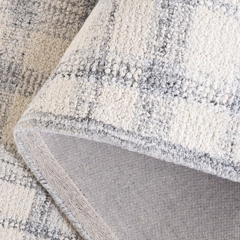 Introduce a touch of modern elegance to your home with this stunning 3 by 5 foot area rug. The contemporary plaid pattern in ivory and grey complements any decor, adding subtle sophistication and style. Expertly hand tufted in India, this rug combines the comfort of wool with the shine of viscose and durability of nylon. With its cozy 1/2 inch height, this small rectangular rug provides a soft step and a visual delight. Perfect for living rooms, bedrooms, or any space that needs a fresh update. Let this rug bring warmth and character into your home.