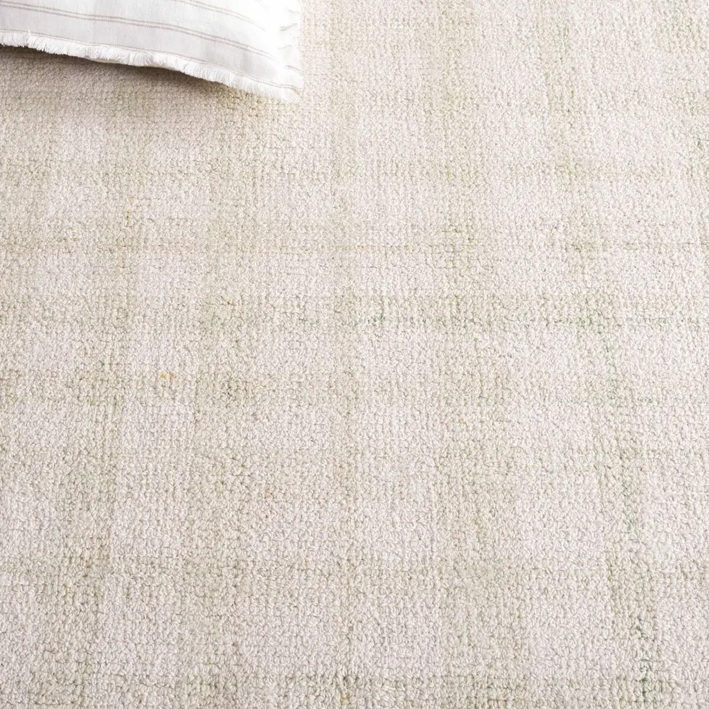 Introduce a touch of modern elegance to your home with this stunning 3 by 5 foot area rug. The contemporary plaid pattern in ivory and grey complements any decor, adding subtle sophistication and style. Expertly hand tufted in India, this rug combines the comfort of wool with the shine of viscose and durability of nylon. With its cozy 1/2 inch height, this small rectangular rug provides a soft step and a visual delight. Perfect for living rooms, bedrooms, or any space that needs a fresh update. Let this rug bring warmth and character into your home.