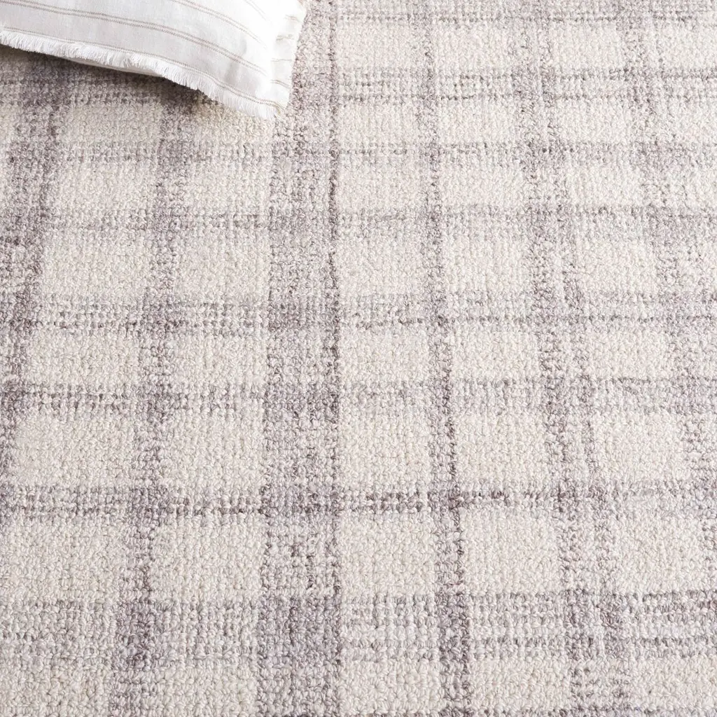 Introduce a touch of modern elegance to your home with this stunning 3 by 5 foot area rug. The contemporary plaid pattern in ivory and grey complements any decor, adding subtle sophistication and style. Expertly hand tufted in India, this rug combines the comfort of wool with the shine of viscose and durability of nylon. With its cozy 1/2 inch height, this small rectangular rug provides a soft step and a visual delight. Perfect for living rooms, bedrooms, or any space that needs a fresh update. Let this rug bring warmth and character into your home.