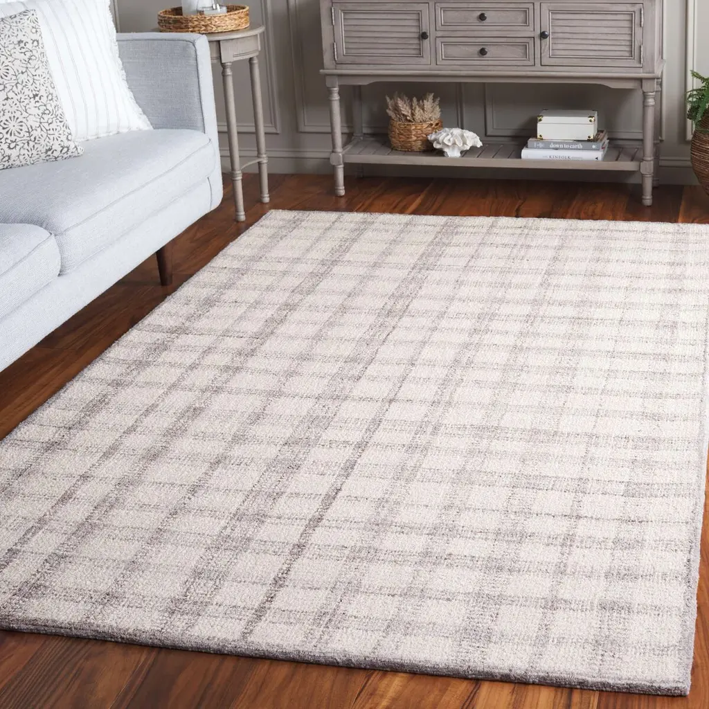 Introduce a touch of modern elegance to your home with this stunning 3 by 5 foot area rug. The contemporary plaid pattern in ivory and grey complements any decor, adding subtle sophistication and style. Expertly hand tufted in India, this rug combines the comfort of wool with the shine of viscose and durability of nylon. With its cozy 1/2 inch height, this small rectangular rug provides a soft step and a visual delight. Perfect for living rooms, bedrooms, or any space that needs a fresh update. Let this rug bring warmth and character into your home.