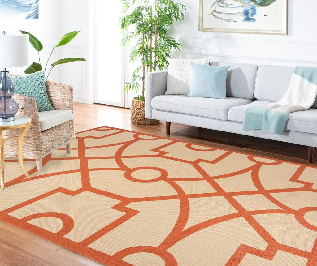 This rug's large-scale pattern and two-tone palette make it a versatile foundation for a space. A rug pad is recommended to help prevent slipping and extend the life of the rug.