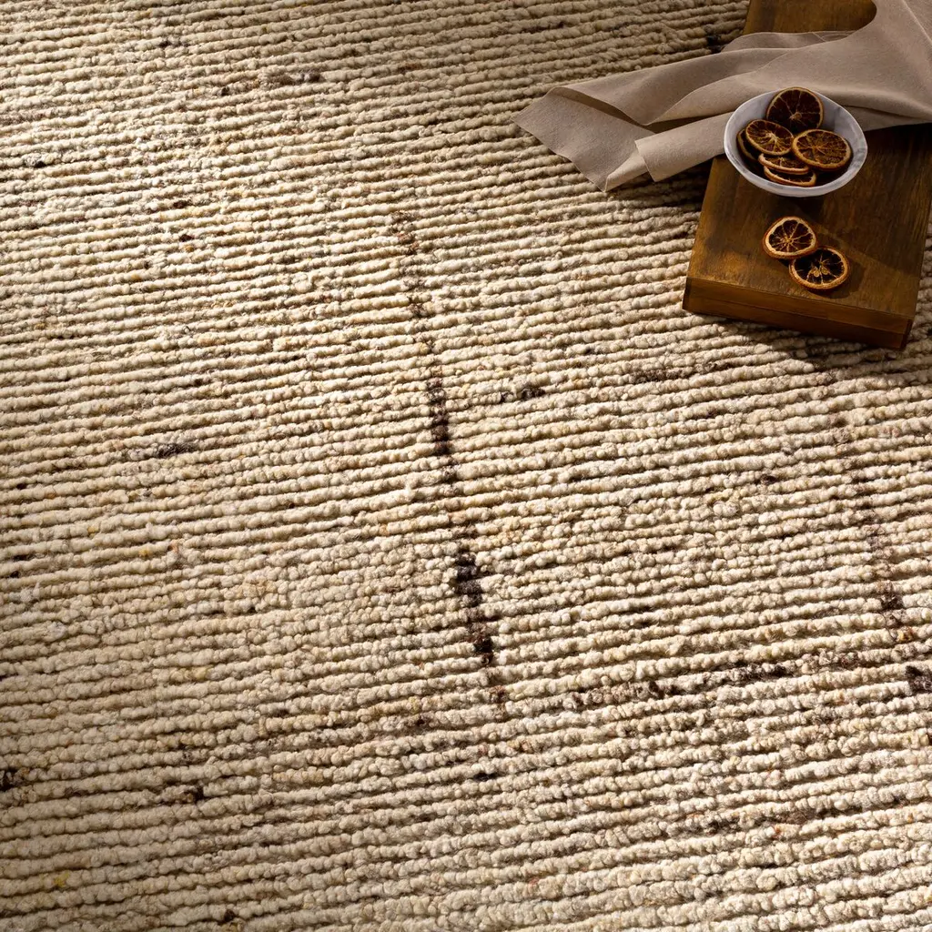 Subtle color gradations add to the depth and artisanal allure to this hand-knotted rug while complementing the understated abstract motif. A rug pad is recommended to help prevent slipping and extend the life of the rug.