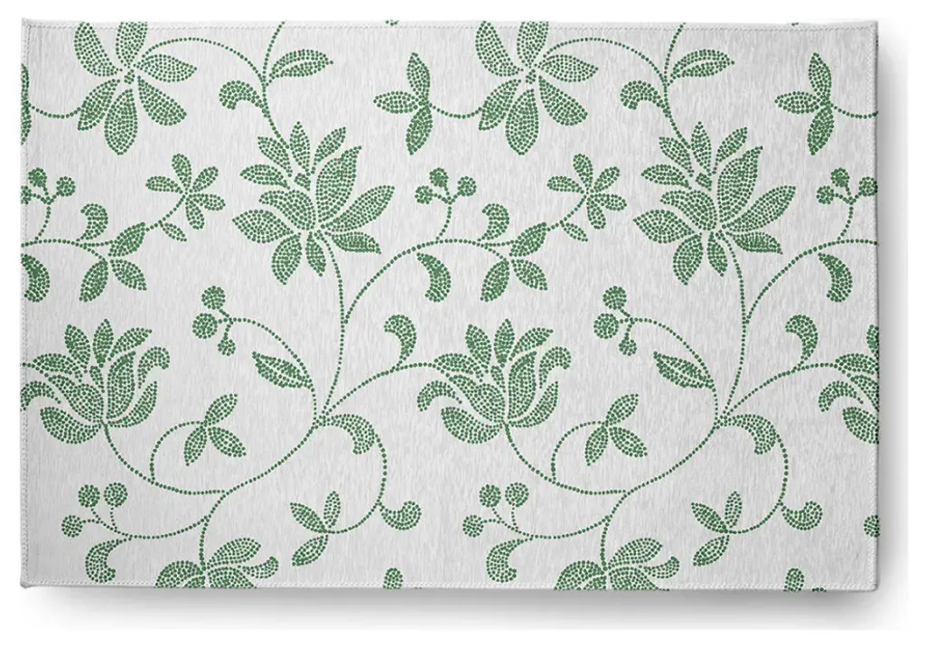 Beautify your home with a Fern Fronds Indoor/outdoor Rug from our Flower Power Collection. Everyone will delight in the space defining design brought to your porch, patio, kitchen, or bathroom by this area rug. The artistic and colorful design is printed on a soft polyester base with a skid resistant backing, making it a perfect way to add color, flare and personality to any indoor or outdoor space. To clean, use a mild soap and lay flat to dry.