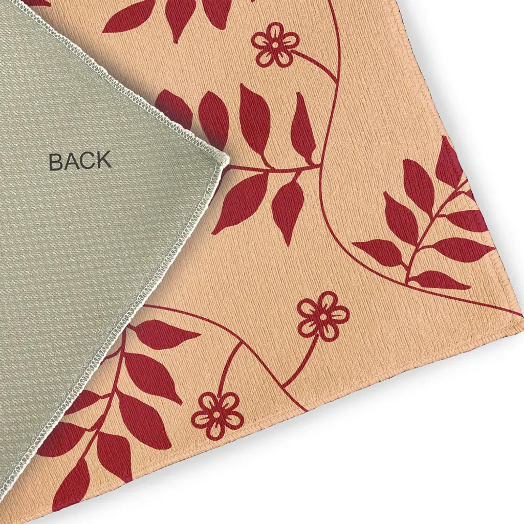 Beautify your home with a Fern Fronds Indoor/outdoor Rug from our Flower Power Collection. Everyone will delight in the space defining design brought to your porch, patio, kitchen, or bathroom by this area rug. The artistic and colorful design is printed on a soft polyester base with a skid resistant backing, making it a perfect way to add color, flare and personality to any indoor or outdoor space. To clean, use a mild soap and lay flat to dry.