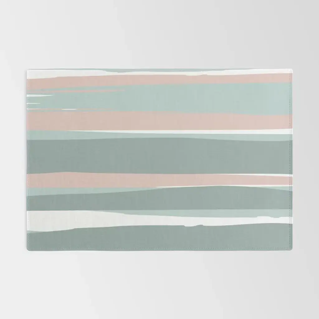 Festive, Abstract, Stripes Pattern, Pink, Green, White Rug