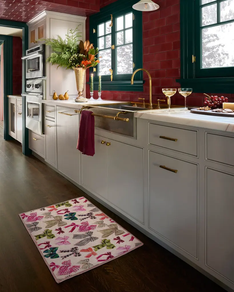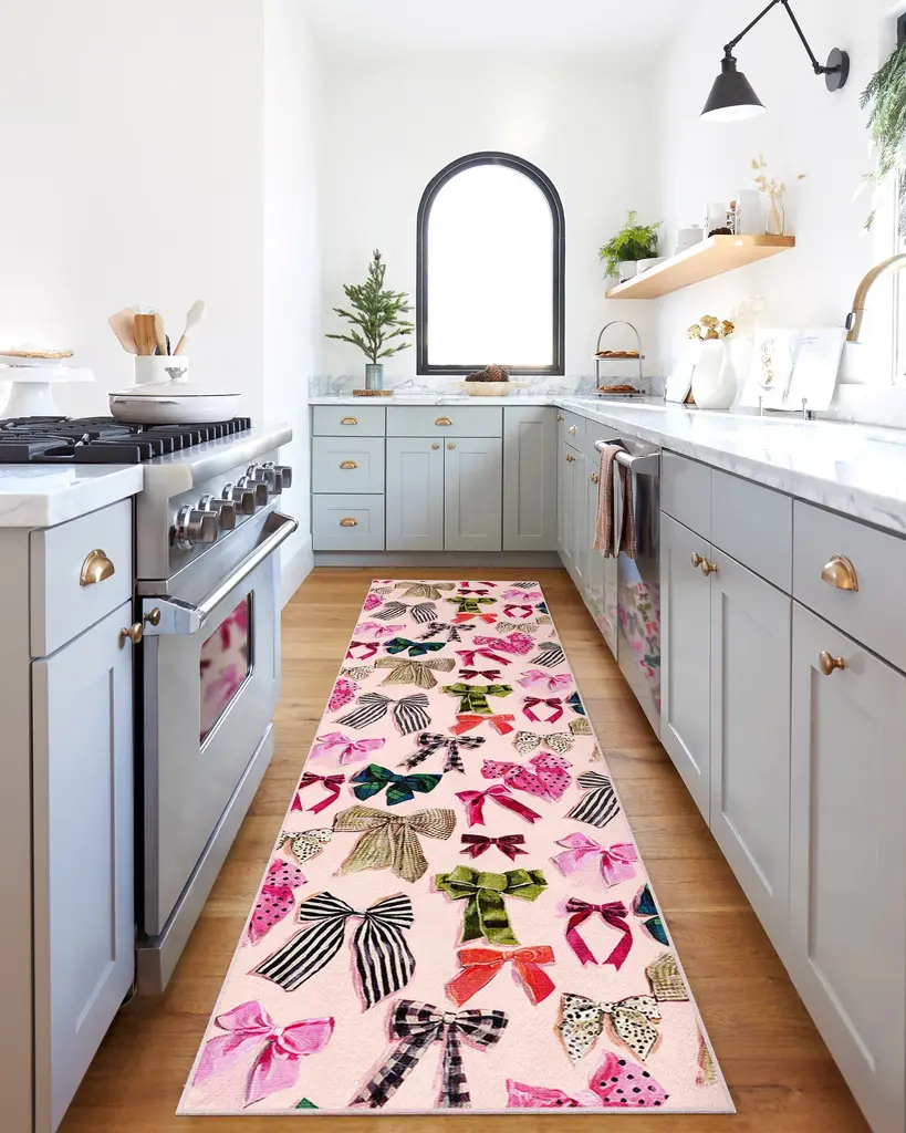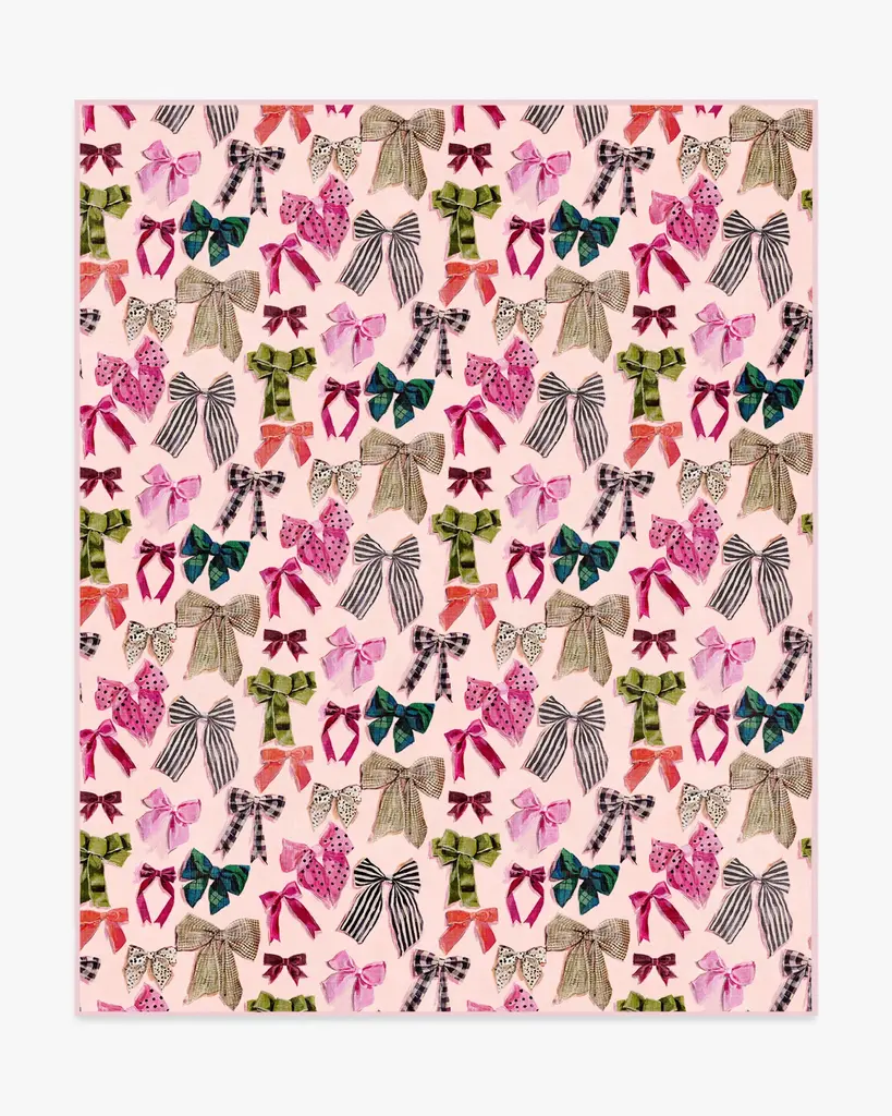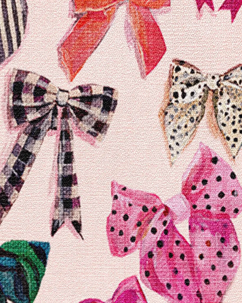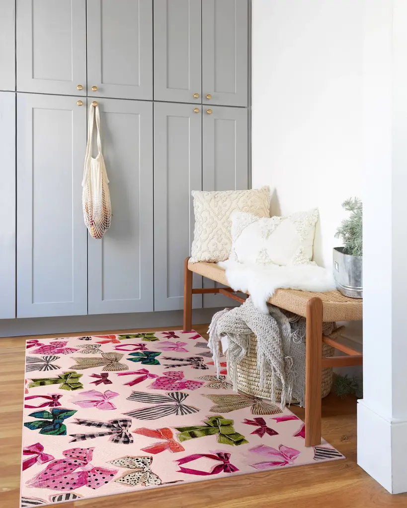 This rug is the ultimate gift—no wrapping required. The Festive Bows Pink Multicolor Rug is your go-to for turning any space into a merry moment, thanks to its soft pink background and a parade of playful bows in pinks, greens, burgundy, and pops of black and white. Water-resistant, stain-resistant, and machine-washable. Colors may vary by device and lighting.