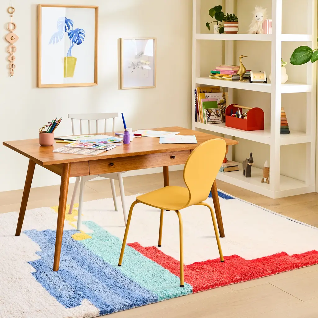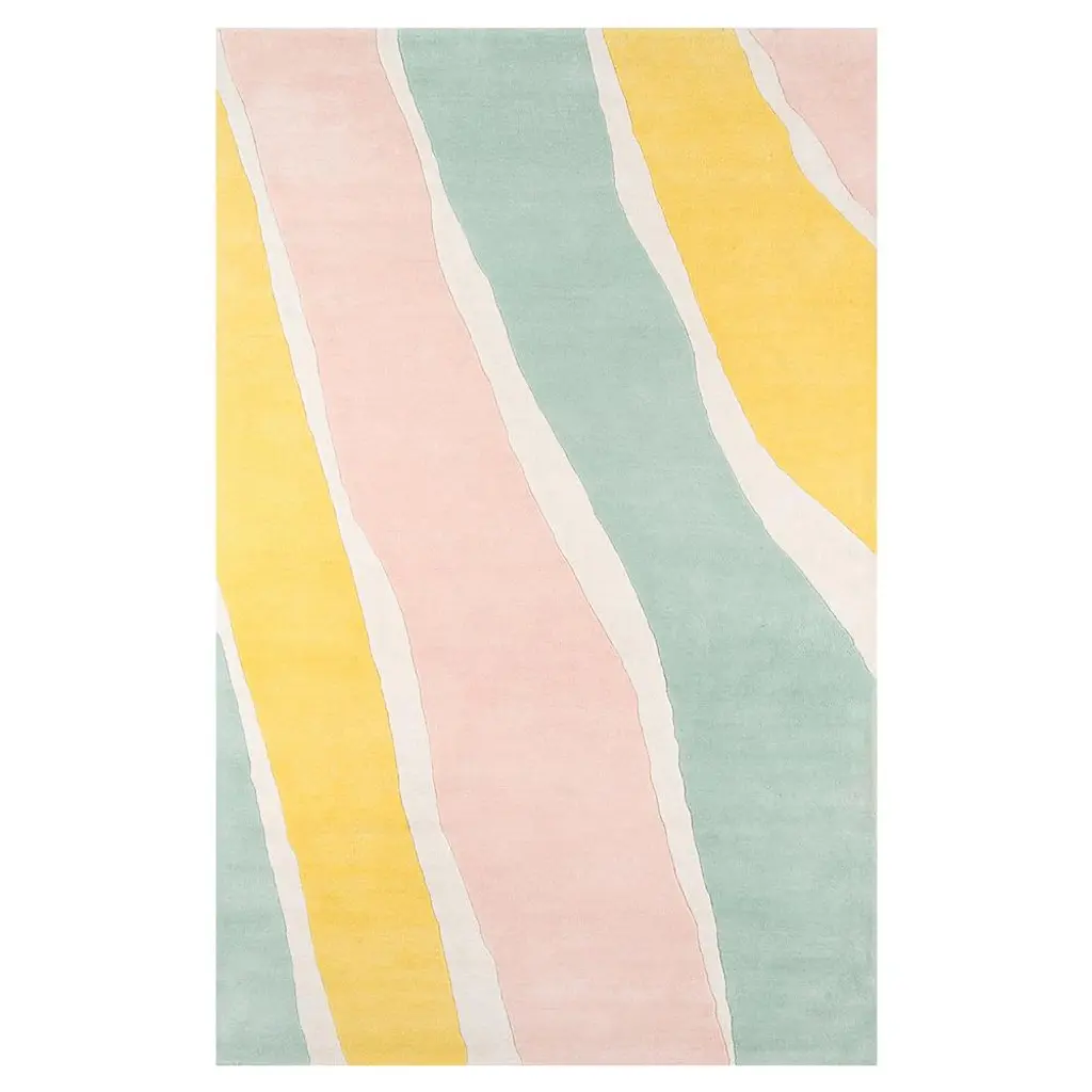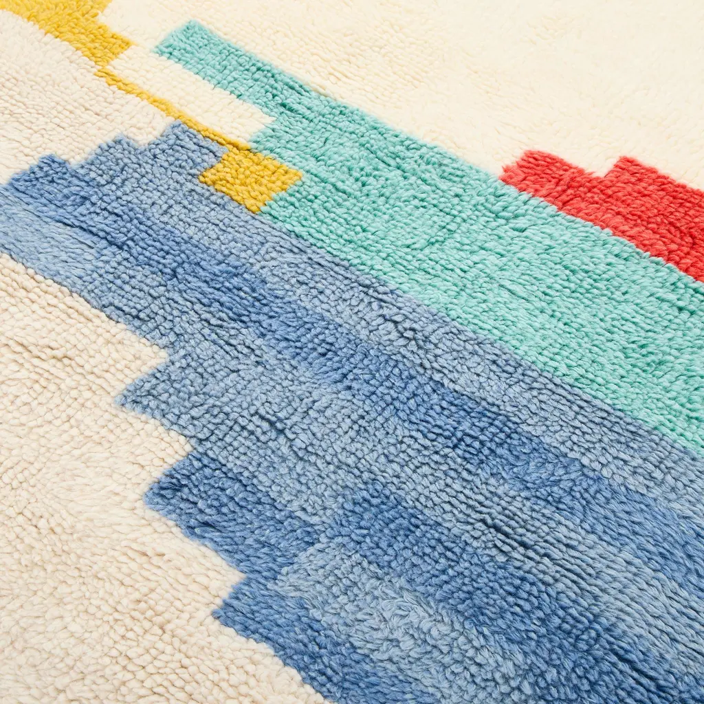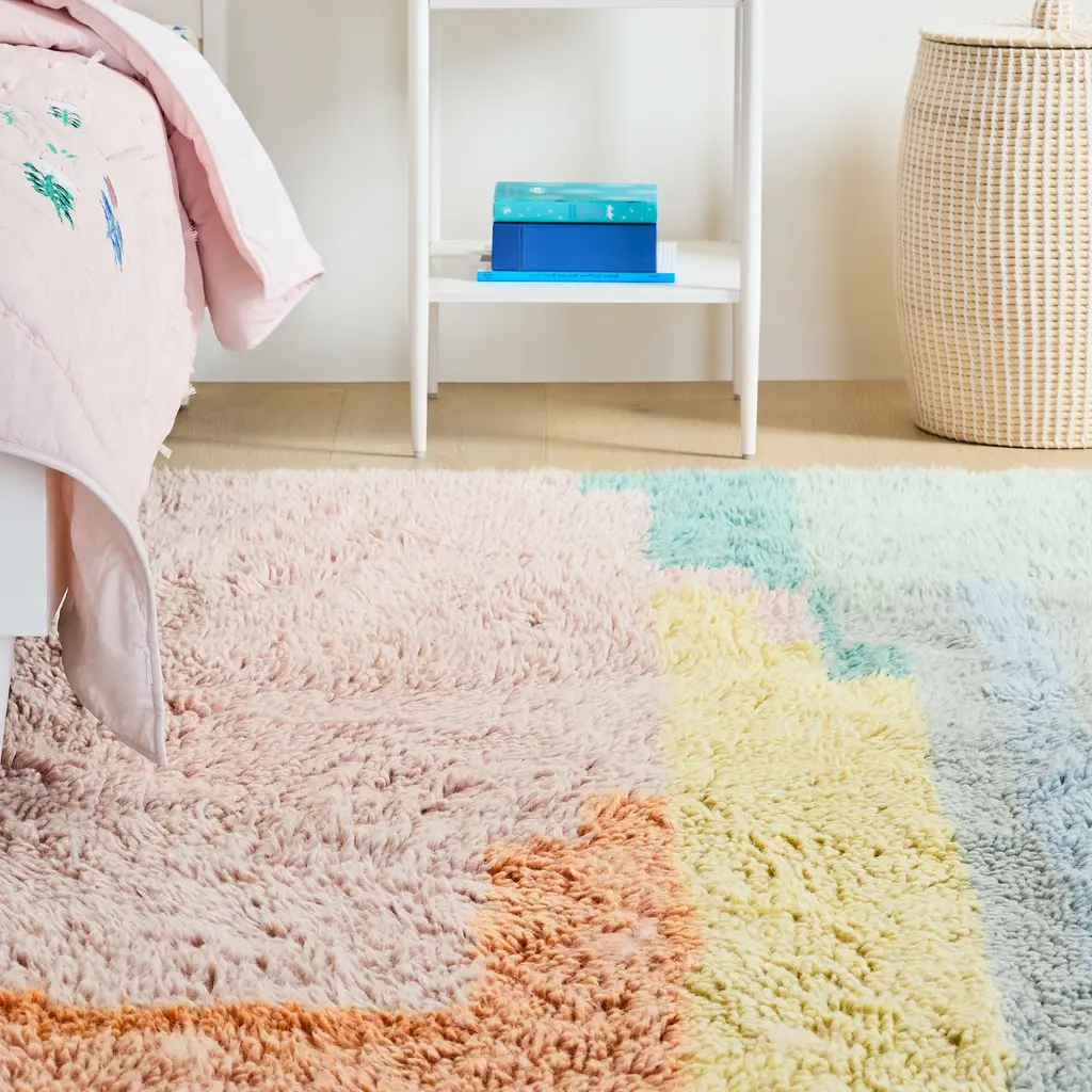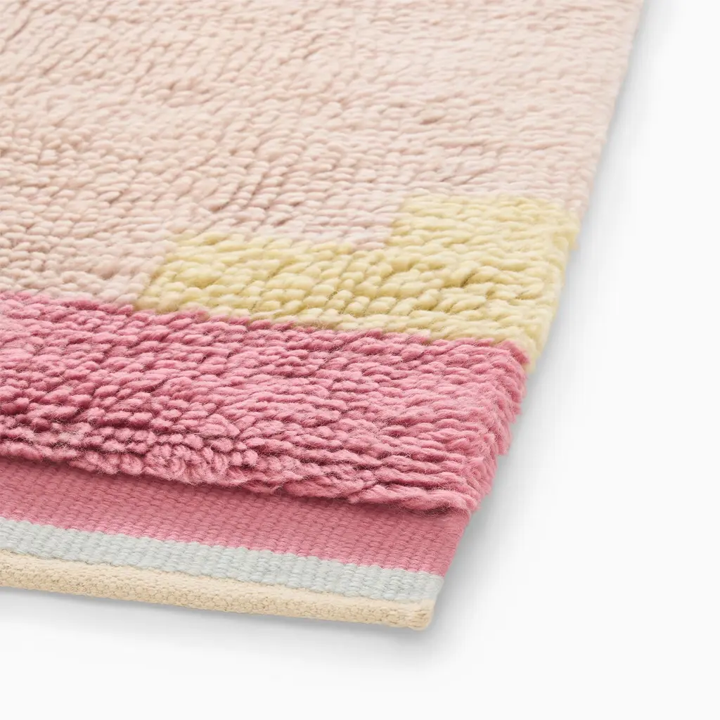 Handcrafted from soft, luxurious wool and cotton fibers. It layers vibrant and playful colors atop one another. Made in a Fair Trade Certified™ facility.