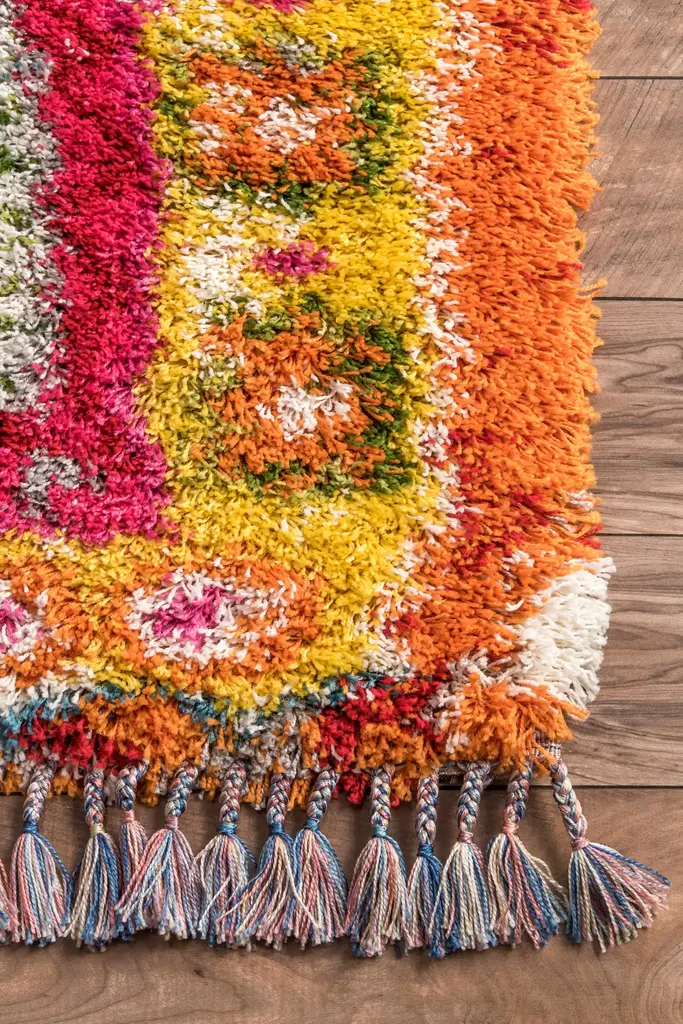 Get ready to turn heads with this luxurious, colorful shag rug. Invite the party in with this daring and durable design, ready to pair perfectly with contemporay or bohemian decor just as unique. A charming accent for any room, this piece is bound to be a show-stopper. With our wide assortment of sizes, make the most of your time at home with our pet-friendly and easy to clean area rugs.