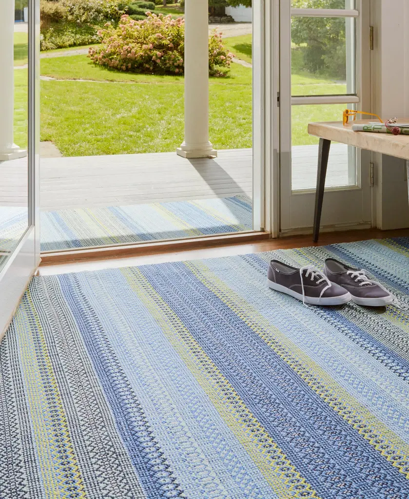 Fiesta Stripe Handwoven Indoor/outdoor Rug | French Blue/green