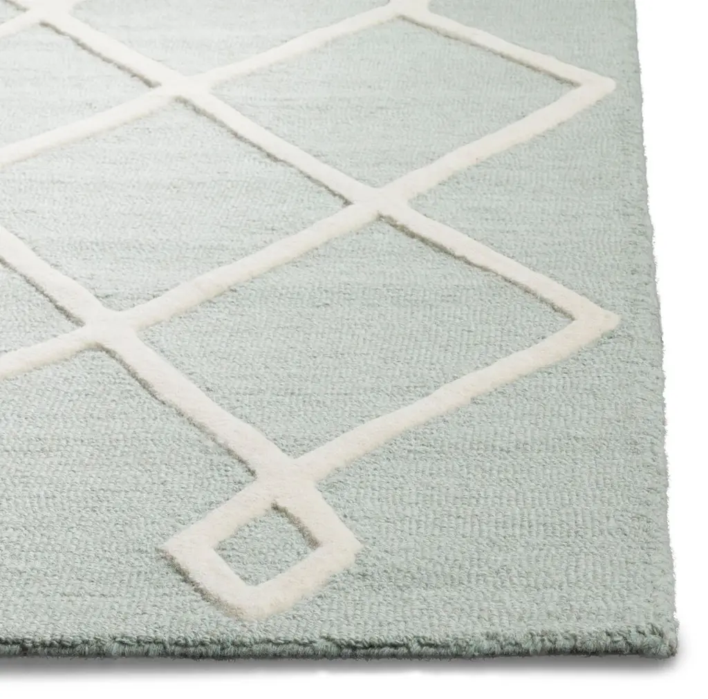 Perfect for grounding your child's bedroom or playroom with texture and pattern, this rug is crafted of wool with a Moroccan-inspired design in mint and ivory. We recommend a rug pad to extend the life of your rug and keep it securely in place.