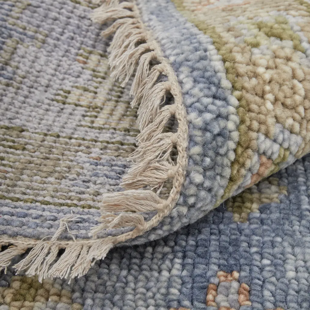 Collection: Fillmore Colors: Blue, Green, Yellow Construction: Hand Knotted Material: Face: 100%Wool Pile: Low Pile Pile Height: 0.4" Styles: Transitional,Bohemian & Eclectic,Craftsman Backing: N/A Made In: India Thickness: 0.4" Price Range: $$$$$ (Premium)