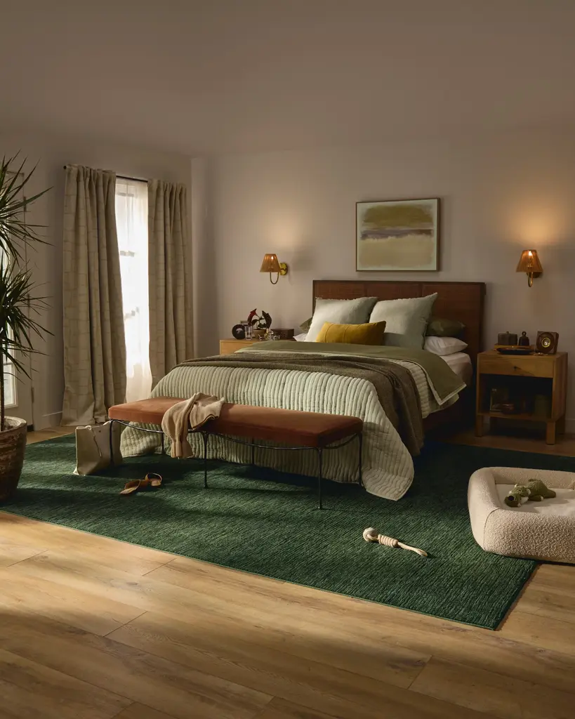Meet the Finley Moss Green Plush Rug: cloud-soft comfort with an all-over linear texture. Space-dyed yarns in tonal shades of mossy green create a heathered effect full of depth and warmth. Perfect for sleek spaces, cozy nooks, or grounding your go-to WFH setup. And if life gets messy (it will), no stress—it’s water-resistant, stain-resistant, and fully machine-washable. Colors may vary by device and lighting.