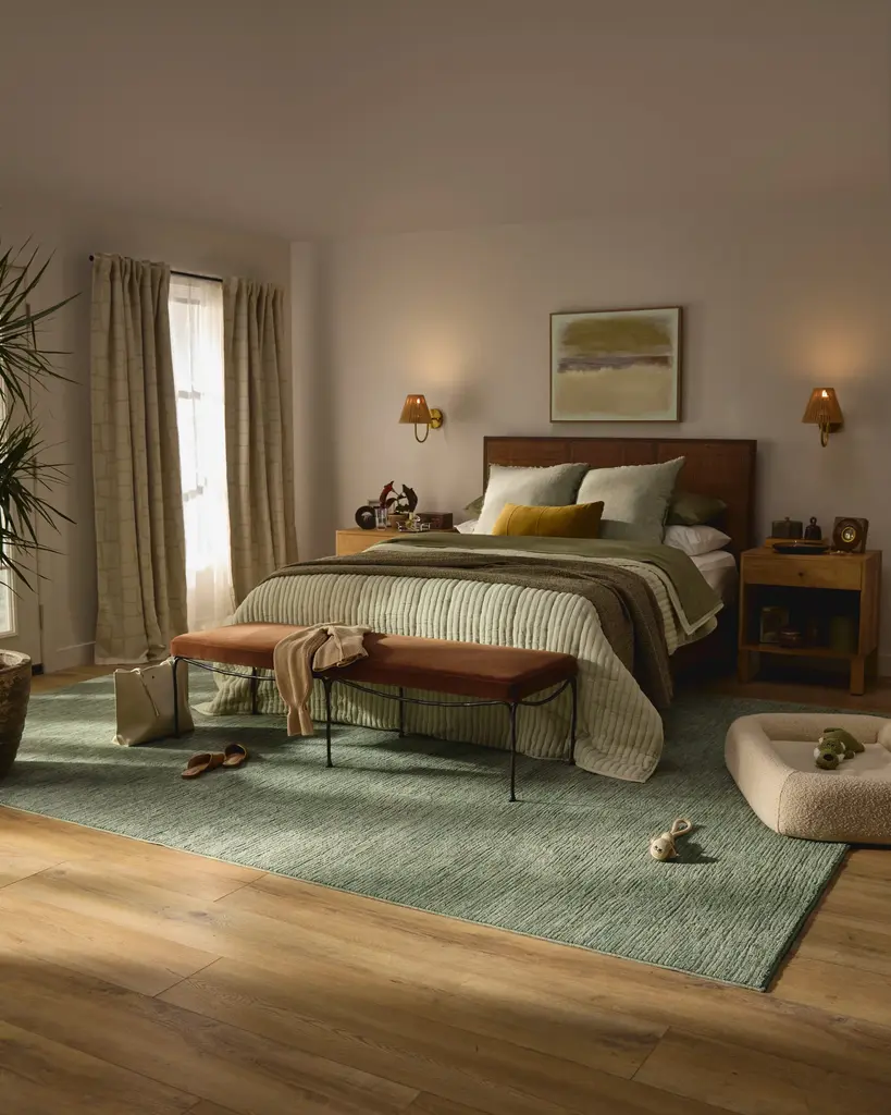 Meet the Finley Sage Plush Rug: cloud-soft comfort with an all-over linear texture. Space-dyed yarns in a variety of green hues, from silvery to cool, create a softly heathered effect. Perfect for cozy corners, work-from-floor moments, or stretching out with a good book. And if life gets messy (it will), no stress—it’s water-resistant, stain-resistant, and fully machine-washable. Colors may vary by device and lighting.