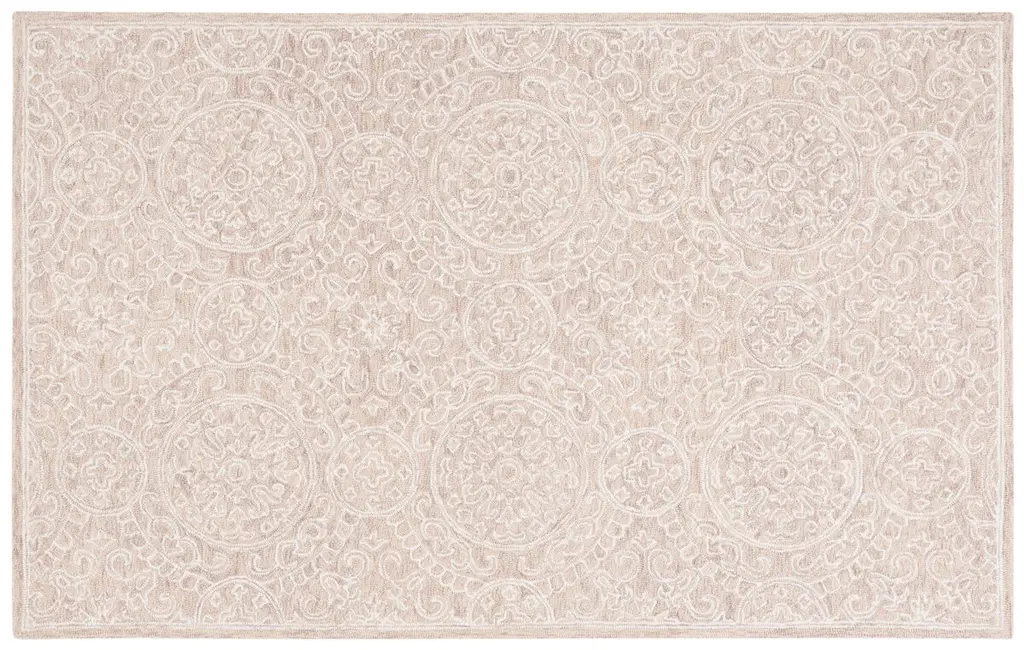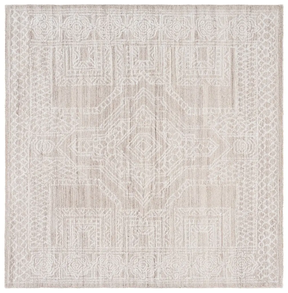 Elevate your living space with this stunning area rug, measuring 7 foot by 7 foot, handcrafted with meticulous attention in India. The soothing blend of blue and ivory hues in a traditional oriental pattern creates a captivating visual appeal, perfect for adding elegance to any room. Made from a combination of wool and cotton, this hand-tufted masterpiece showcases both artistry and comfort. Its square shape and 3/8 inch height provide a subtle yet sophisticated presence, making it an ideal centerpiece for your home. Experience the unique charm and character this rug brings with its seamless blend of style and craftsmanship.