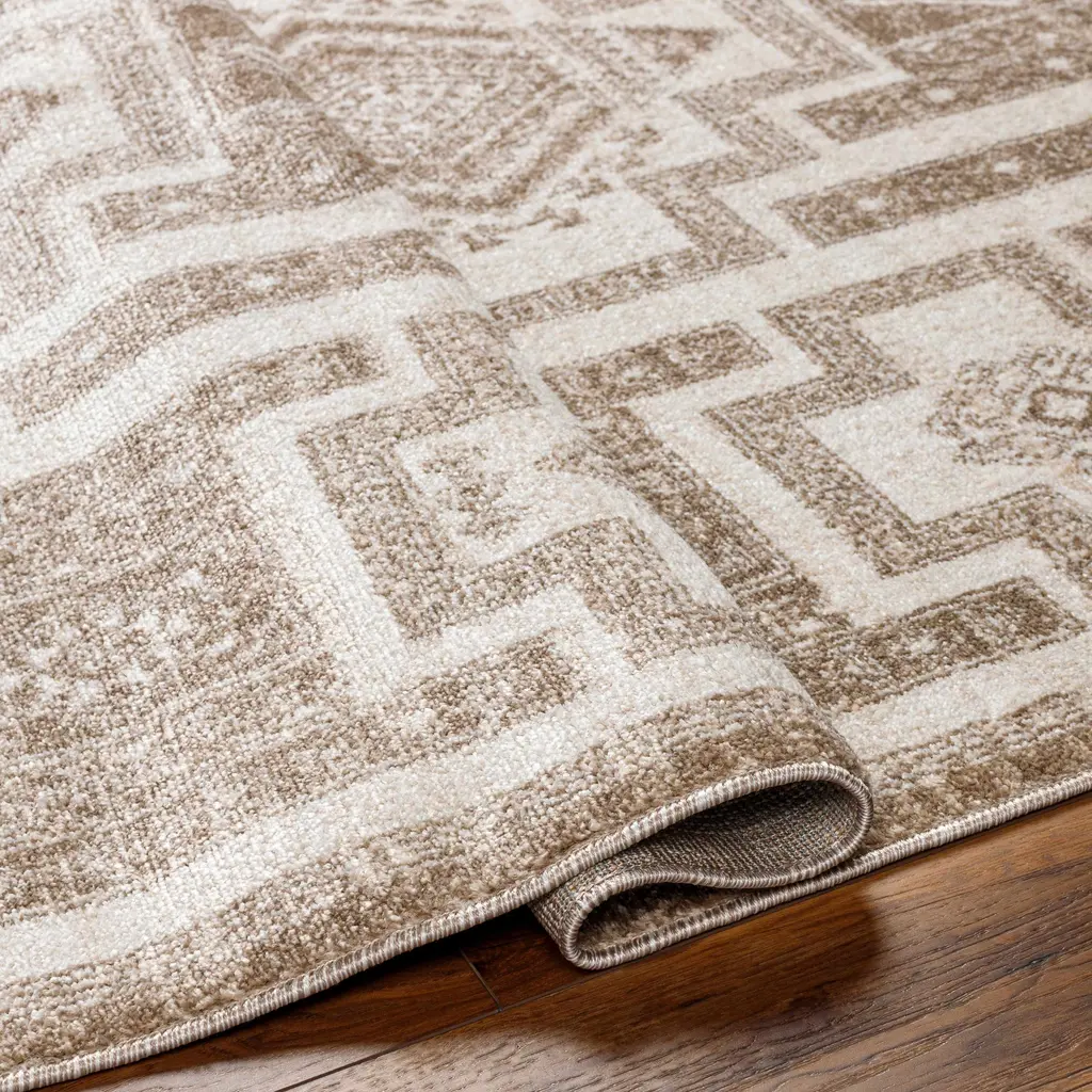 Collection: Fiona Colors: Beige, Medium Brown, Gray Construction: Machine Woven Material: 100% Polypropylene Pile: Medium Pile Pile Height: 0.28" Styles: Transitional,Bohemian Made In: Turkey Thickness: 0.35" Price Range: $$$$$ (Affordable)