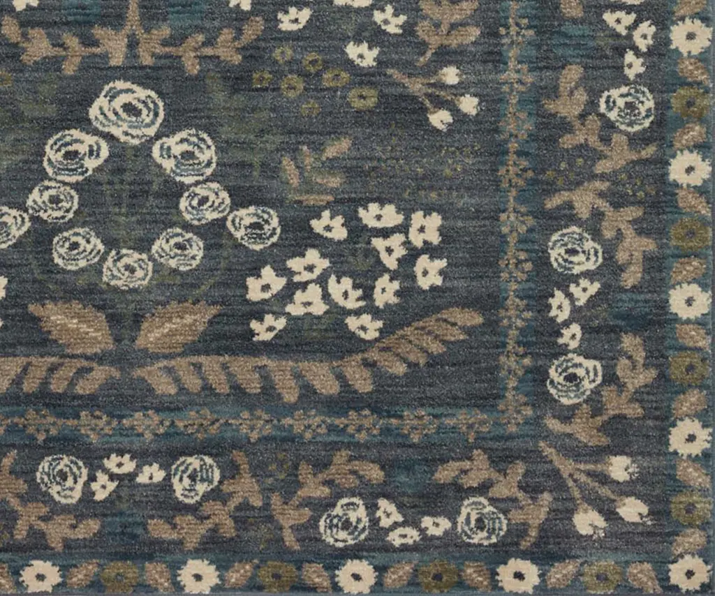The Florence rug features our signature flowers blooming in a mirrored motif, bracketed by sprays of delicate leaves. Powerloomed in Egypt, it has a soft, shed-resistant pile that is both fade and stain resistant. Part of our Rifle Paper Co. × Loloi collection. The layout and scale of our rugs is adjusted to accommodate each available size, and may be different than what is pictured here. Images of each size are available by hovering over the desired size on our desktop site.