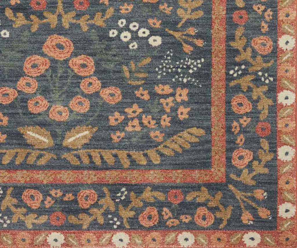 The Florence rug features our signature flowers blooming in a mirrored motif, bracketed by sprays of delicate leaves. Powerloomed in Egypt, it has a soft, shed-resistant pile that is both fade and stain resistant. Part of our Rifle Paper Co. × Loloi collection. The layout and scale of our rugs is adjusted to accommodate each available size, and may be different than what is pictured here. Images of each size are available by hovering over the desired size on our desktop site.