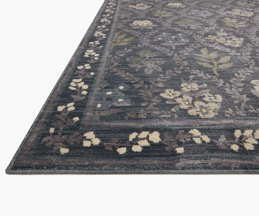 Our Hawthorne rug features sprays of assorted flowers standing under delicate arches, creating a botanical grid with a vintage feel. Powerloomed in Egypt, it has a soft, shed-resistant pile that is both fade and stain resistant. Part of our Rifle Paper Co. × Loloi collection. The layout and scale of our rugs is adjusted to accommodate each available size, and may be different than what is pictured here. Images of each size are available by hovering over the desired size on our desktop site.